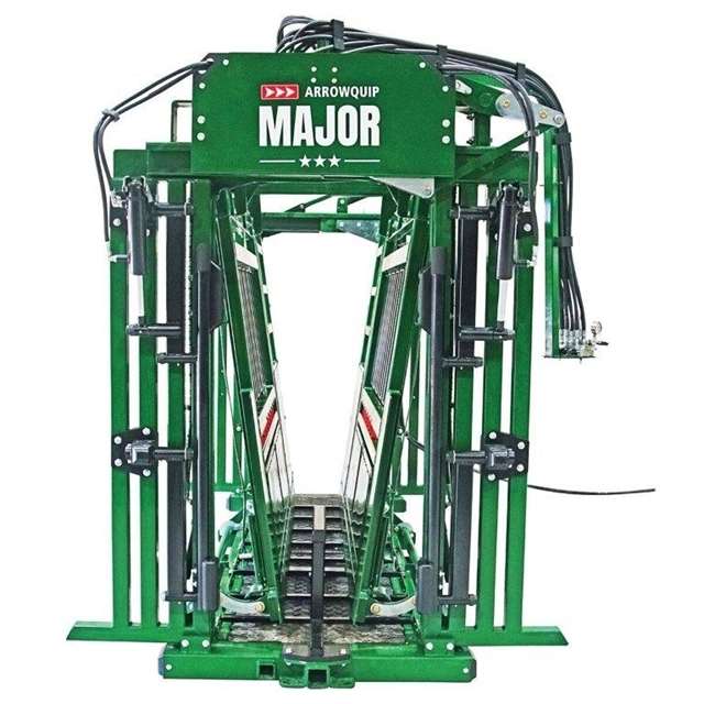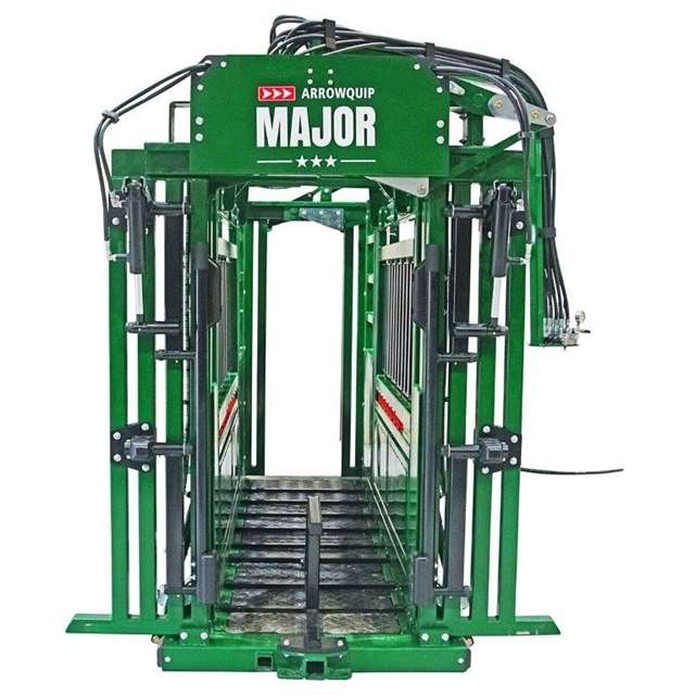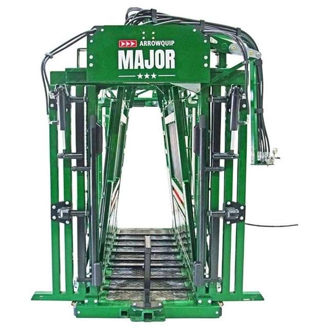 AROWQUIP Model Major Hydraulic Chute with palp cage, Neck Extenders, Sternum Bar and 3 way squeeze