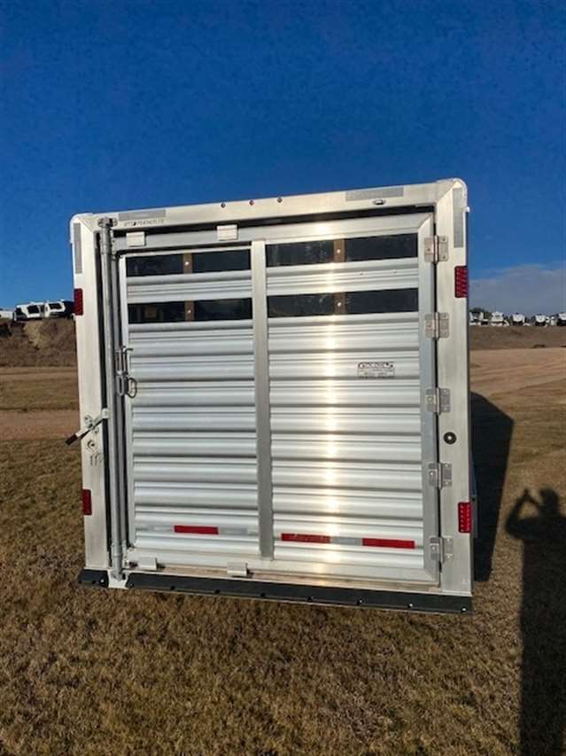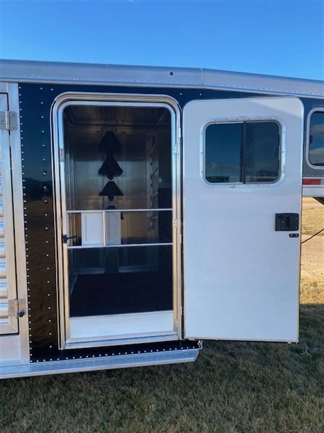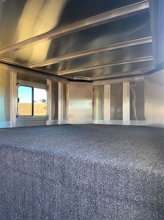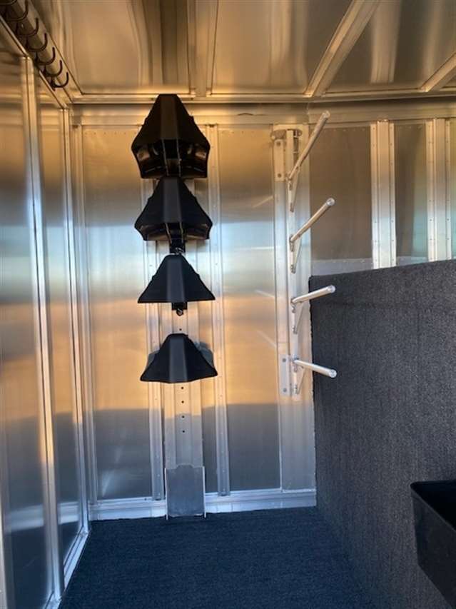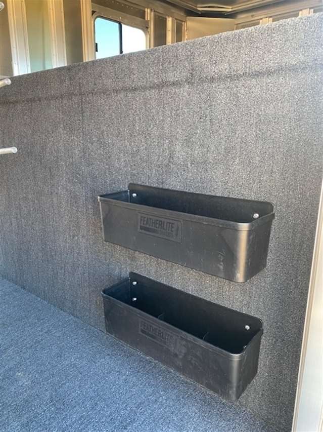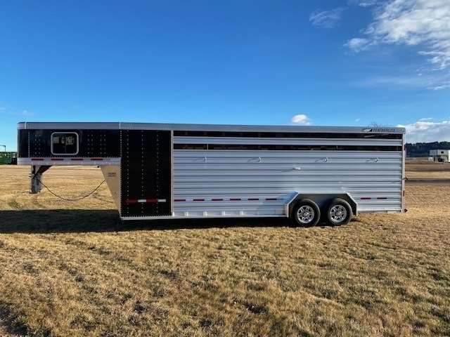 2025 Featherlite Model 8413 Stock Combo 7.6 Wide, 24ft long and 7ft high, Has 4ft front tack with 4 saddle racks, lots of bridal hooks, blanket bar and brush tray, Smoked plexiglass inserts, 1 Center cut gate with slam latch centered in stock area to make two 10ft compartments, Tie rings inside and outside, Easy Care flooring, Tandem 7K axles with electric brakes and Silver Aluminum wheels. Black skin. 10 YEAR LIMITED WARRANT
