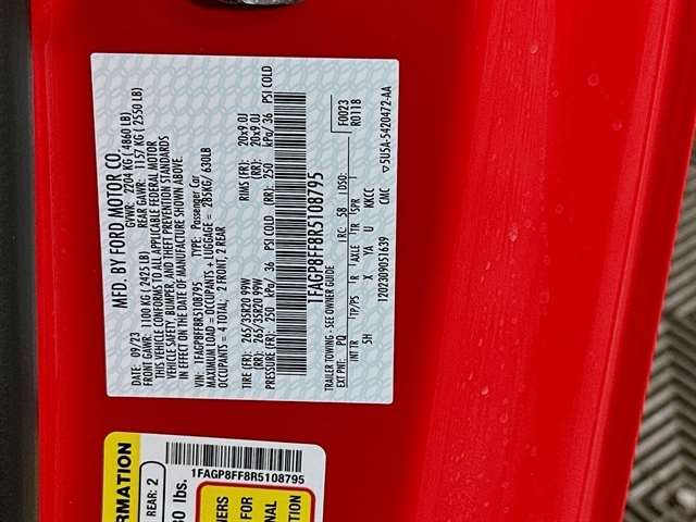 Race Red 2024 Ford Mustang GT Premium RWD 10-Speed Automatic 5.0L V8 Ti-VCT Active Anti-Theft System, B O Sound System by Bang Olufsen, Connected Built-In Navigation, Equipment Group 401A High Package, Ford Co-Pilot360 Assist+, Illuminated Door-Sill Scuff Plates, Integrated Turn Signals, Leather-Trimmed Bucket Seats w/Color Accents, Locking Center Console, Memory Driver Seat Mirrors, Pre-Collision Assist w/Automatic Emergency Braking, Security Package, Wheel Locking Kit.