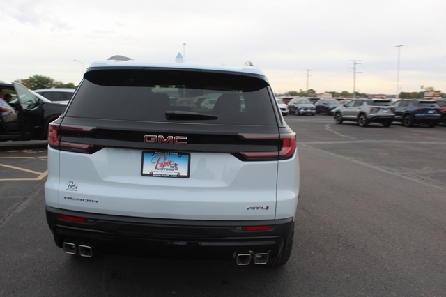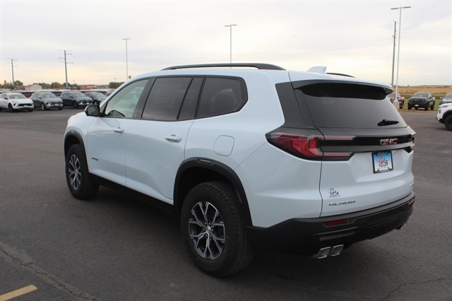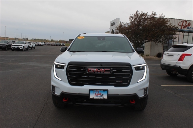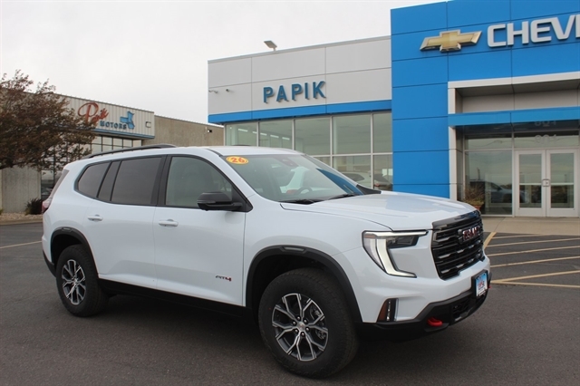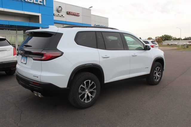 Glacier White Tricoat 2026 GMC Acadia AT4 AWD 8-Speed Automatic 2.5L DOHC AWD, Forest Storm W/Mahogany Accent.