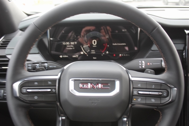 Floor Liner Package (LPO) (1st & 2nd Row All-Weather Floor Liner (LPO), 3rd Row All-Weather Floor Liner (LPO), and Integrated Cargo Liner (LPO)), AWD, Forest Storm W/Mahogany Accent, 12 Speakers, 2-Way Driver Power Lumbar Seat Adjuster, 3.49 Final Drive Axle Ratio, 3rd row seats: split-bench, 4-Wheel Disc Brakes, 6-Way Power Front Passenger Seat Adjuster, 7-Passenger Seating (2-2-3 Seating Configuration), 8-Way Power Driver Seat Adjuster, ABS brakes, Air Conditioning, Alloy wheels, AM/FM radio: SiriusXM with 360L, Apple CarPlay/Android Auto, Auto High-beam Headlights, Auto-dimming Rear-View mirror, Automatic temperature control, Bodyside moldings, Bose Premium 12-Speaker System w/Sub-Woofer, Brake assist, Bumpers: body-color, Cloth/CoreTec Seat Trim, Compass, Delay-off headlights, Driver door bin, Driver vanity mirror, Dual front impact airbags, Dual front side impact airbags, Electronic Stability Control, Emergency communication system: OnStar Services capable, Exterior Parking Camera Rear, Four wheel independent suspension, Front anti-roll bar, Front Bucket Seats, Front Center Armrest, Front dual zone A/C, Front fog lights, Front Passenger Power Lumbar Seat Adjuster, Front reading lights, Fully automatic headlights, Garage door transmitter, Heated door mirrors, Heated Driver & Front Passenger Seats, Heated front seats, Heated steering wheel, Illuminated entry, Leather steering wheel, Low tire pressure warning, Navigation System, Occupant sensing airbag, Outside temperature display, Overhead airbag, Overhead console, Panic alarm, Passenger door bin, Passenger vanity mirror, Power door mirrors, Power driver seat, Power Liftgate, Power passenger seat, Power steering, Power windows, Radio data system, Radio: 15`` Premium GMC Infotainment System, Rear air conditioning, Rear anti-roll bar, Rear reading lights, Rear side impact airbag, Rear window defroster, Rear window wiper, Remote keyless entry, Security system, SiriusXM w/360L, Speed control, Speed-sensing steering, Split folding rear seat, Spoiler, Sport steering wheel, Steering wheel mounted audio controls, Tachometer, Telescoping steering wheel, Tilt steering wheel, Traction control, Trip computer, Turn signal indicator mirrors, Variably intermittent wipers, Voltmeter, and Wheels: 18`` x 8`` Dark Machined Aluminum.