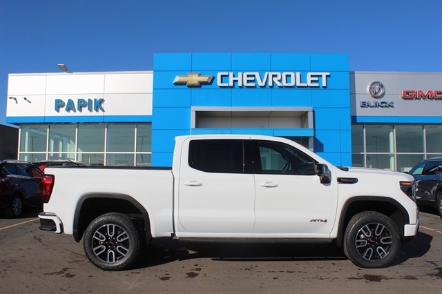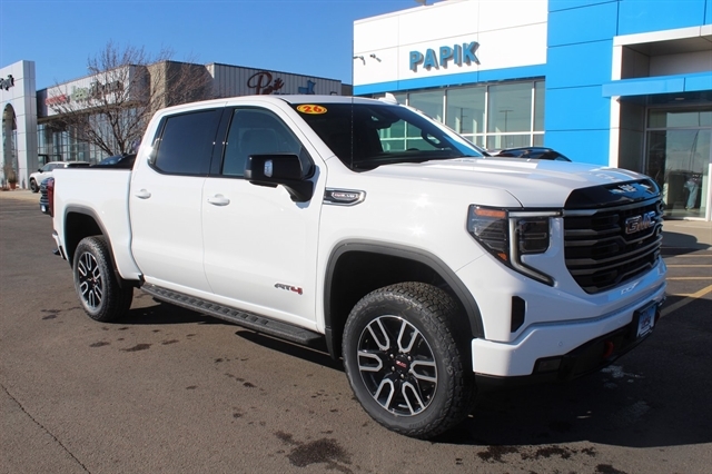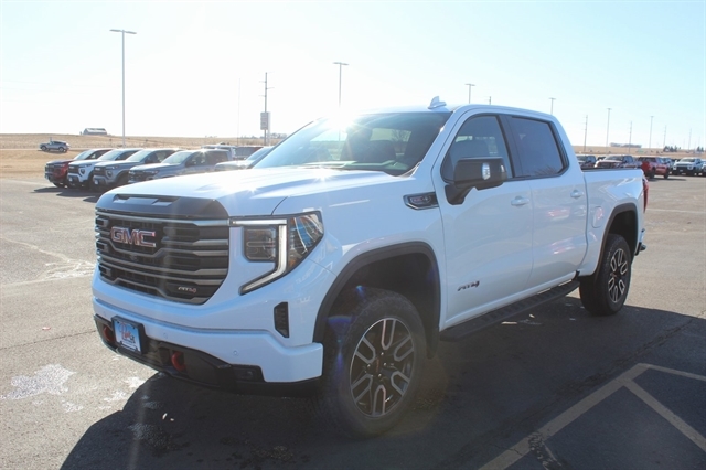 Summit White 2026 GMC Sierra 1500 AT4 4WD 10-Speed Automatic EcoTec3 6.2L V8 10-Speed Automatic, 4WD, Jet Black With Kalahari Accent Leather.