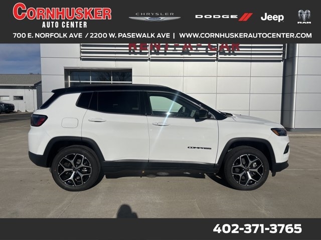 Score *31 Highway MPG and 23 City MPG* in this efficient and capable *2026 Jeep Compass Sport Utility*, perfect for daily commutes and weekend adventures alike. Finished in eye-catching *Bright White Clearcoat* with a sleek *Black interior*, this 4WD Compass is powered by an *Intercooled Turbo Regular Unleaded I-4 2.0L/122 engine* paired with a smooth *automatic transmission*, delivering confident performance and impressive fuel economy. With its rugged Jeep capability, sharp styling, and versatile design, the Compass blends comfort and capability in a compact package that's ready for wherever life takes you. Whether you're navigating city streets or tackling light off-road trails, this Jeep delivers the performance and confidence you expect.*Stop By Today!* For a must-own New Chrysler, Jeep, Dodge, and Ram vehicle, visit us at *Cornhusker Auto Center*, 700 E Norfolk Ave, Norfolk, NE 68701---your local New Car Dealership in NE. Just minutes away!