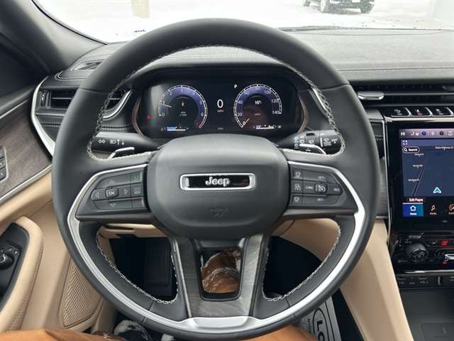 This 2025 Jeep Grand Cherokee L features a hands-free Bluetooth phone system. This model has auto-adjust speed for safe following. The leather seats in the vehicle are a must for buyers looking for comfort, durability, and style. An off-road package is installed on this model so you are ready for your four-wheeling best. See what's behind you with the back up camera on this 2025 Jeep Grand Cherokee L . Never get into a cold vehicle again with the remote start feature on the vehicle. This 2025 Jeep Grand Cherokee L offers Android Auto for seamless smartphone integration. Keep your hands warm all winter with a heated steering wheel in this mid-size suv . The installed navigation system will keep you on the right path. This Jeep Grand Cherokee L offers Apple CarPlay for seamless connectivity. This vehicle shines with clean polished lines coated with an elegant white finish. This model has a V6, 3.6L high output engine.
