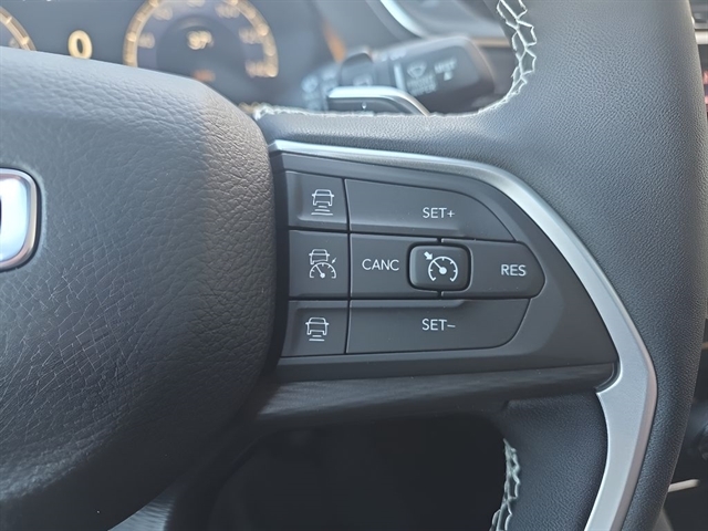 Quick Order Package 22J Laredo X: Power Sunroof; Selectable Tire Fill Alert; Remote Start System; 3rd Row Charge-Only USB Ports; 115V Auxiliary Power Outlet; Rain Sensitive Windshield Wipers; Wireless Charging Pad; Heated Front Seats; Heated Steering Wheel; Power Liftgate. Trailer Tow Package: Rear Load Leveling Suspension; Full Size Spare Tire; 7 & 4 Pin Wiring Harness; Dual Exhaust Tips; Heavy Duty Engine Cooling; 180 Amp Alternator; 18" Full-Size Steel Spare Wheel; Automatic Headlamp Leveling System; Trailer Hitch Zoom; Class IV Receiver Hitch. Diamond Black Crystal Pearlcoat. MyFlexCare Service Plan. **Equipment listed is based on original vehicle build and subject to change. Please confirm the accuracy of the included equipment by calling the dealer prior to purchase.**