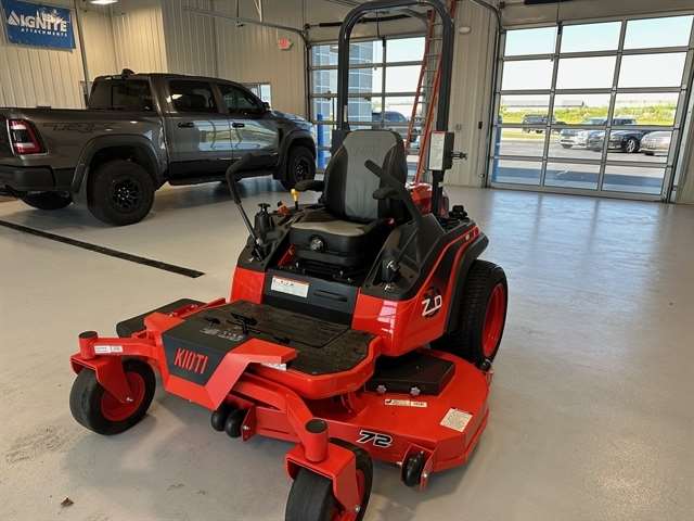 KIOTI ZXD72 diesel zero-turn mower with 72" deck. A whisper-quiet KIOTI diesel engine fed by a massive 17.1 gallon fuel tank.