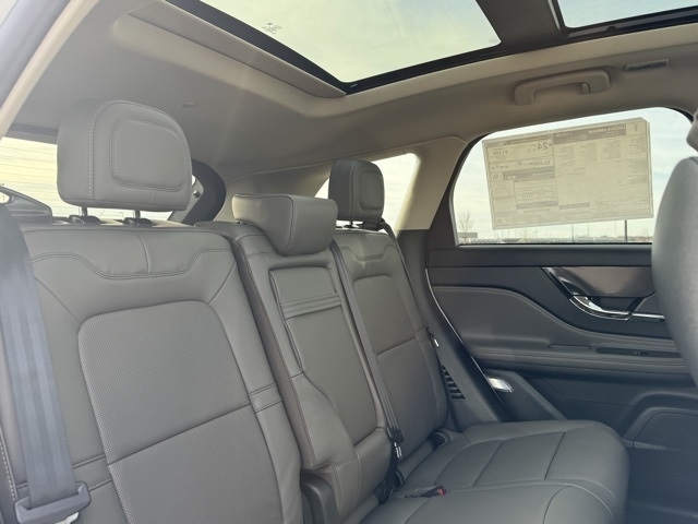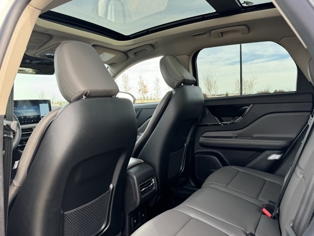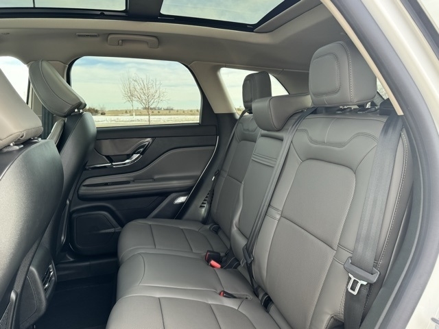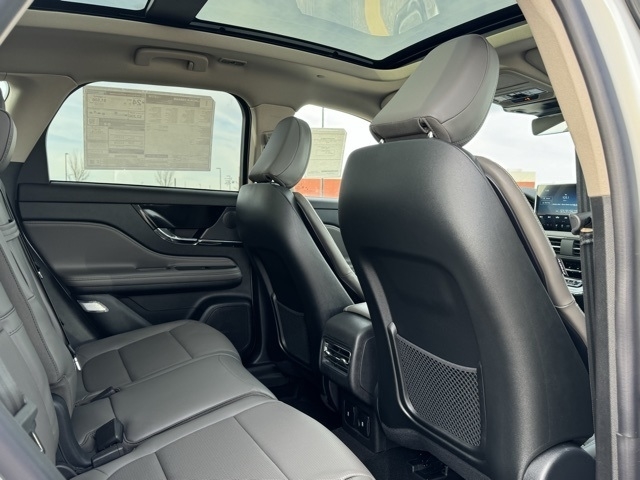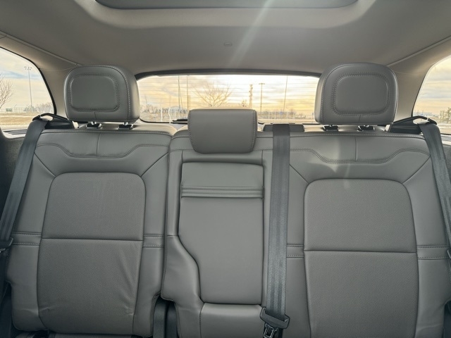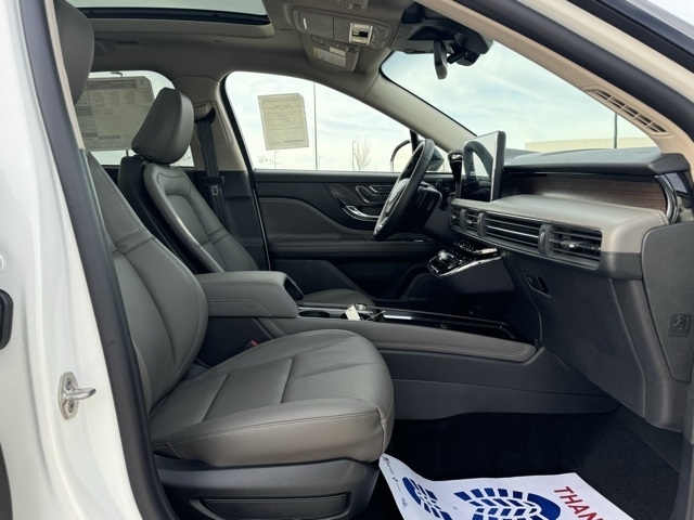 Check out the rest of the great features on this vehicle! Equipment Group 201A (2 Additional USB Ports in Rear of Center Console, 60/40 EasyFold Rear Seat w/Power Seatback Release, Frameless Auto Dimming Rearview Mirror, Hands-Free Liftgate, Heated Leather Wrapped Steering Wheel, Heated Sideview Mirrors, Heated/Ventilated Driver & Front Passenger Seats, Phone As A Key (PAAK), Power Tilt/Telescoping Steering Column w/Memory, Rain Sensing Wipers, Universal Garage Door Opener, Windshield Wiper De-Icer, and Wireless Charging Pad), 19`` Bright Machined Aluminum Wheels, 360-Degree Camera, 4-Wheel Disc Brakes, 9 Speakers, ABS brakes, Air Conditioning, Alexa Built-In, Alloy wheels, AM/FM radio: SiriusXM with 360L, Apple CarPlay/Android Auto, Auto High-beam Headlights, Auto-dimming Rear-View mirror, Automatic temperature control, Black Roof Rack Side Rails, Brake assist, Bumpers: body-color, Compass, Delay-off headlights, Driver door bin, Driver vanity mirror, Dual front impact airbags, Dual front side impact airbags, Electronic Stability Control, Emergency communication system: 911 Assist, Four wheel independent suspension, Front anti-roll bar, Front Bucket Seats, Front Center Armrest, Front License Plate Bracket, Front Parking Sensors, Front reading lights, Fully automatic headlights, Heated door mirrors, Heated Rear Seats, Illuminated entry, Knee airbag, Leather steering wheel, Low tire pressure warning, Memory Seat, Navigation system: Connected Navigation (4-year trial), Occupant sensing airbag, Outside temperature display, Overhead airbag, Overhead console, Panic alarm, Panoramic Vista Roof w/Power Shade, Passenger door bin, Passenger vanity mirror, Post-Collision Braking, Power door mirrors, Power driver seat, Power Liftgate, Power passenger seat, Power steering, Power windows, Premium Leather-Trimmed Heated Captain`s Chairs, Radio data system, Radio: Lincoln Premium Audio System w/MP3, Rear anti-roll bar, Rear Parking Sensors, Rear reading lights, Rear seat center armrest, Rear window defroster, Rear window wiper, Remote keyless entry, Reverse Brake Assist, Security system, SiriusXM w/360L Radio, Speed control, Speed-sensing steering, Speed-Sensitive Wipers, Split folding rear seat, Spoiler, Steering wheel mounted A/C controls, Steering wheel mounted audio controls, SYNC 4 Communications & Entertainment System, Tachometer, Telescoping steering wheel, Tilt steering wheel, Traction control, Tri Zone Auto Climate Control, Trip computer, and Variably intermittent wipers.