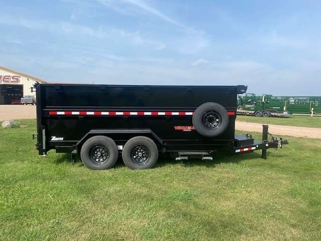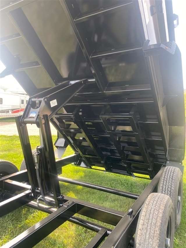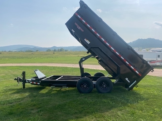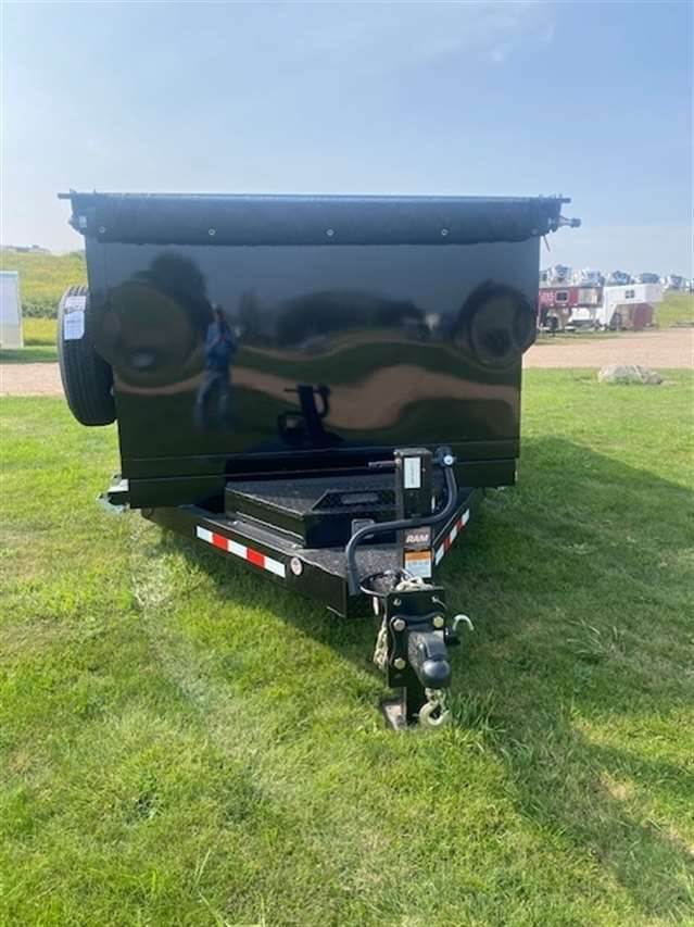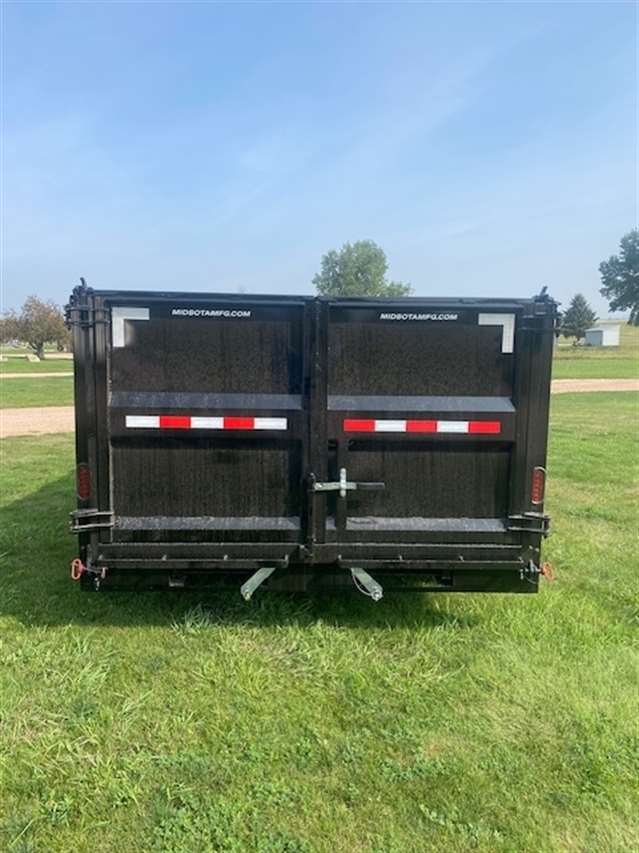 2026 Midsota 82" Wide and 14' Long Bumper Pull Dump Box with 48 inch sides. Pallet fork holders, Rolled Tarp Assembly, 6' Tuck under ramps, 3 way double rear doors works great for spreading dirt or gravel, 7 Gauge 1 piece floor, 6 D-Ring tie downs in box, Tubular Steel Main Frame, 16" O.C. Crossmember spacing, 7000lb Spring Axles with EZ Lube hubs, 235/85R16 Steel Wheels with and tires including Spare, Black in color, 15400lb GVWR, 5-YEAR FRAME WARRANTY