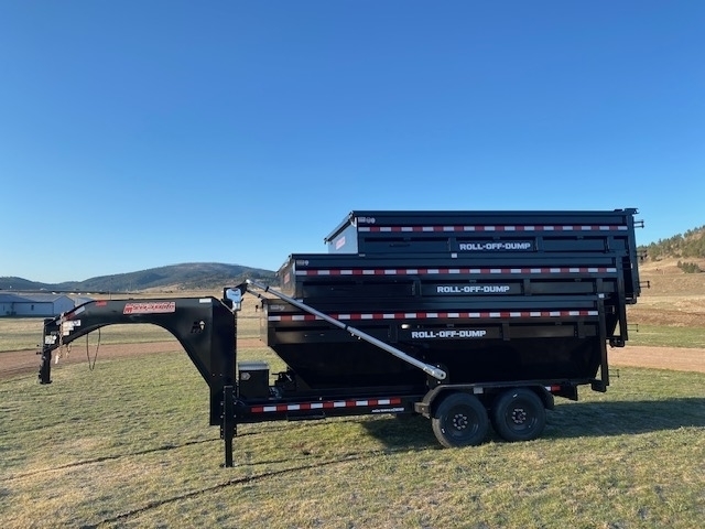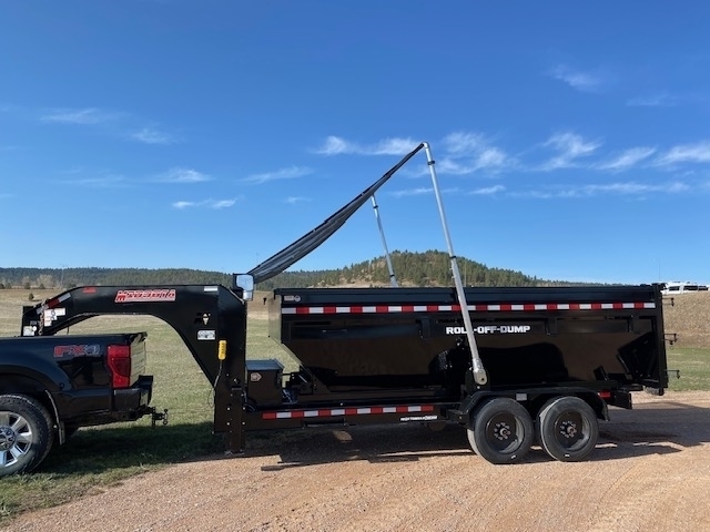 2025 Midsota Model RC8216 Roll-Off-Dump Trailers. Gooseneck Carrier with Hydraulic jacks and 8000lb spring axles with 17.5 Steel wheels and 18ply tires for a GVWR of 17,600lbs. Has 25,000lb. Warrior winch for loading bins, Solar Charger, Electric Tarp, Bins available in 16ft and 14ft. 5 YEAR LIMITED WARRANTY