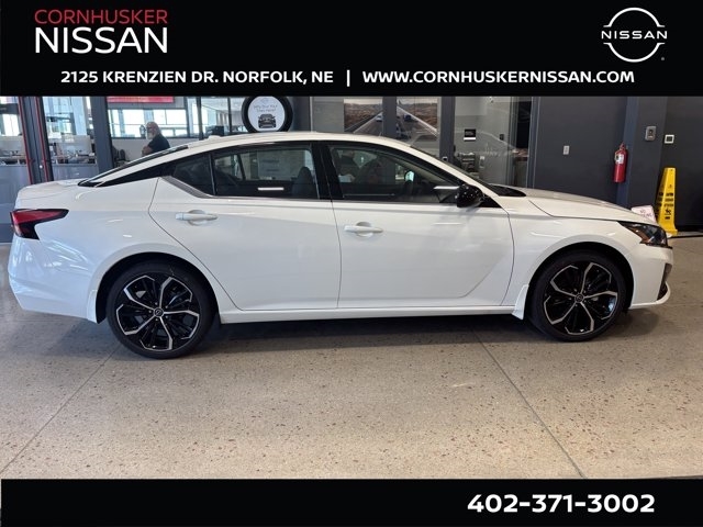Scores 37 Highway MPG and 27 City MPG! This new 2025 Nissan Altima SR features an efficient 2.5 L I-4 engine paired with an Xtronic CVT and full-time AWD---giving you performance and peace of mind on Nebraska roads. With its striking *Pearl White Tricoat* exterior and sharp *Sport* interior, this Altima combines style and capability. You'll enjoy convenient touches like 19'' sport machined-alloy wheels, automatic high-beam LED headlights, a leatherette steering wheel, and sport seats with unique stitching. Safety is built--in thanks to Intelligent Forward Collision Warning with Automatic Emergency Braking, Blind Spot Warning with Intervention, Rear Cross Traffic Alert, Lane Departure Warning, Rear Automatic Braking, and more.Stop by today! For a must-own new Nissan, visit us at *Cornhusker Nissan*, located at *2125 Krenzien Dr., Norfolk, NE 68701*---your local Nebraska dealership. We'll deal, and you'll save; plain and simple!