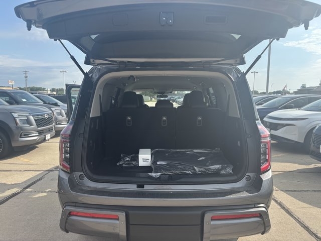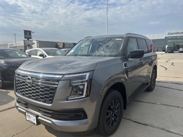 The 2025 Nissan Armada in Gun Metallic with a Charcoal interior is a full-size SUV that combines rugged capability with refined luxury. Powered by a 3.5L twin-turbo V6 engine producing 425 horsepower and 516 lb-ft of torque, it is paired with a 9-speed automatic transmission and comes standard with four-wheel drive. The EPA-estimated fuel economy is 15 MPG city and 18 MPG highway, offering a balance between power and efficiency.Inside, the Armada offers a spacious and luxurious cabin with features such as leather-appointed seating, a 12.3-inch digital display, and a 13-speaker Bose audio system. The exterior design includes LED headlights, a bold front grille, and 20-inch wheels. Safety features include Nissan's Safety Shield 360 and ProPILOT Assist.Visit Cornhusker Nissan at 2125 Krenzien Dr., Norfolk, NE 68701 to see the 2025 Nissan Armada in person and take it for a test drive. Our team is ready to assist you in finding the perfect vehicle to suit your needs.