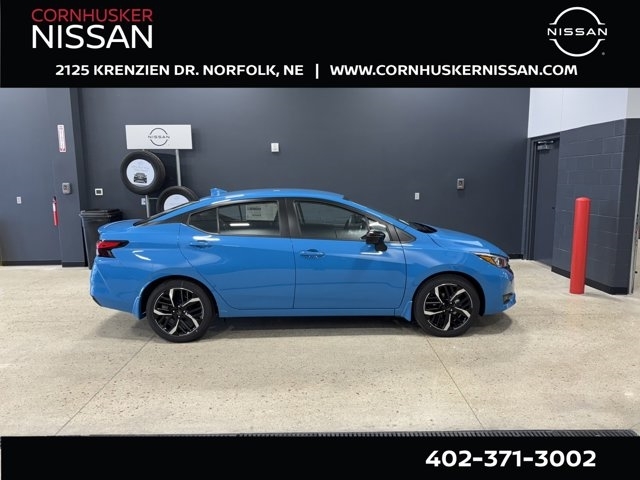 The *New 2025 Nissan Versa SR* in stunning *Arctic Ice Blue Metallic* delivers sporty styling, smart tech, and incredible efficiency---up to *32 MPG city / 40 MPG highway*. This well-equipped subcompact sedan includes *sport SR fabric seat trim with bold interior accents*, *heated front seats*, and *LED headlights* for a modern, premium look. Convenience features like *remote keyless entry*, *WiFi hotspot*, *Apple CarPlay®/Android Auto?*, and *Bluetooth®* keep you connected on the go. Additional upgrades include *carpeted floor mats and trunk mat*, *trunk package with net and bag hooks*, *splash guards*, and *aluminum wheels*. With advanced safety features like Blind Spot Monitoring, Rear Cross Traffic Alert, Rear Parking Aid, and Lane Departure Warning, the Versa SR offers big protection in a compact footprint.Experience this value-packed, stylish sedan today at *Cornhusker Nissan, 2125 Krenzien Dr., Norfolk, NE 68701* --- where smart driving begins.