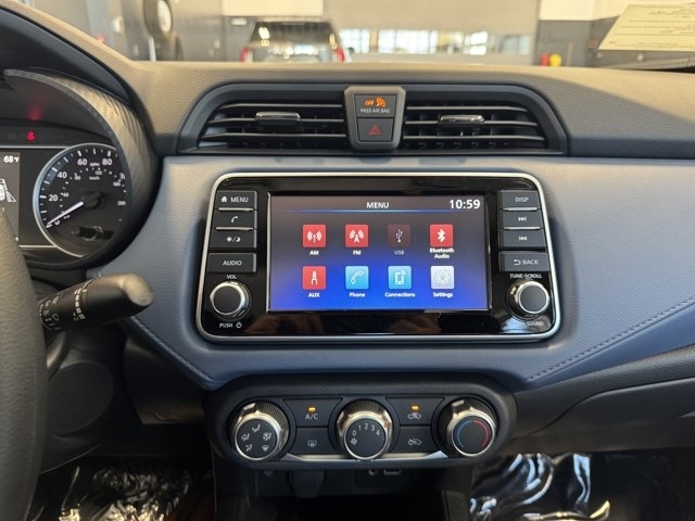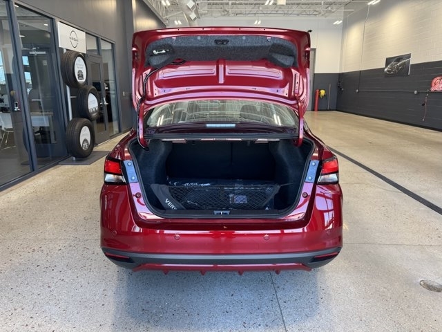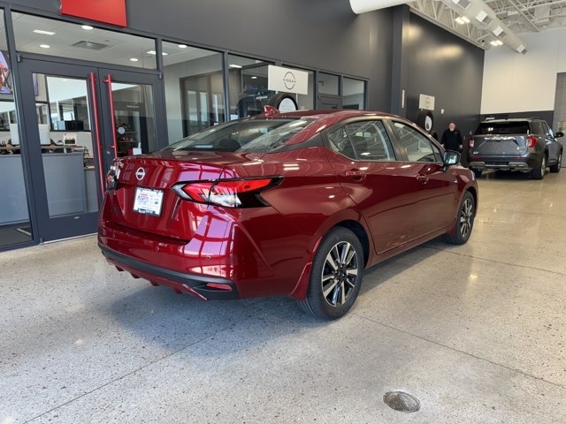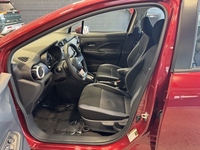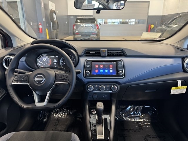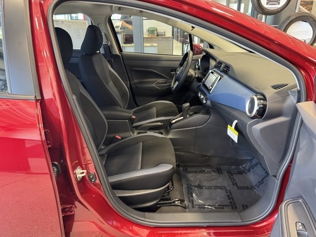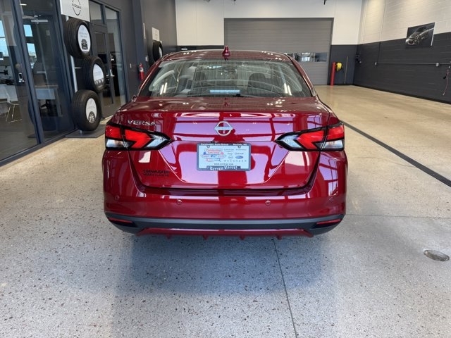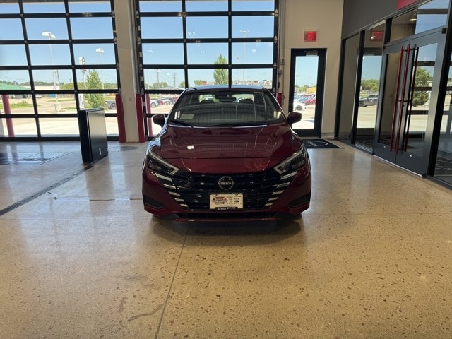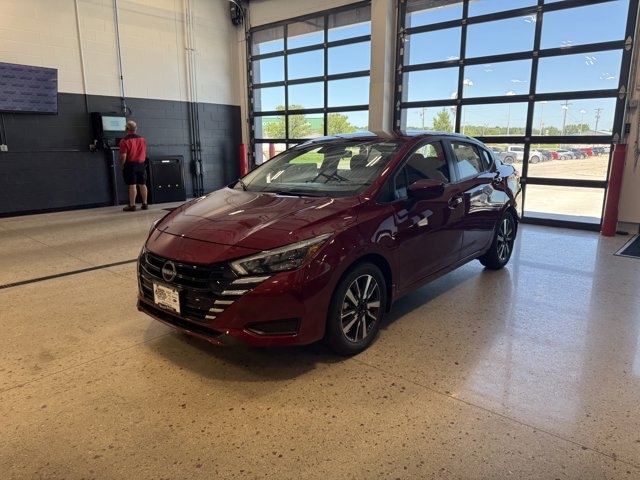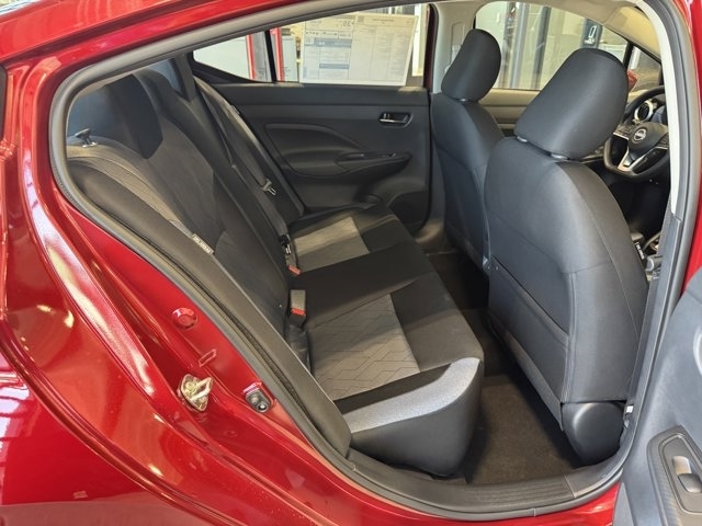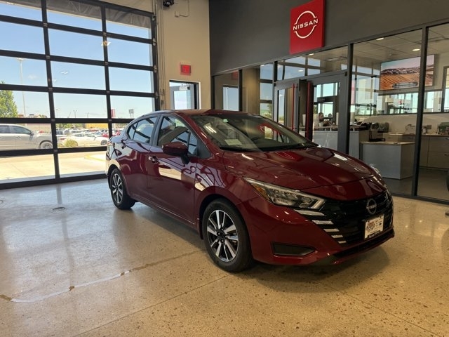 The 2025 Nissan Versa in Scarlet Ember Tintcoat with a Graphite interior is a compact sedan that delivers impressive fuel efficiency and modern features. Powered by a 1.6L 4-cylinder engine paired with a Continuously Variable Transmission (CVT), it achieves an EPA-estimated 32 MPG in the city and 40 MPG on the highway. This front-wheel-drive vehicle offers a comfortable ride with seating for up to five passengers and a spacious trunk for cargo. Standard safety features include Automatic Emergency Braking, Blind Spot Warning, and Rear Automatic Braking, contributing to a safer driving experience.For more information or to schedule a test drive, visit Cornhusker Nissan of Norfolk at 2125 Krenzien Dr, Norfolk, NE 68701.