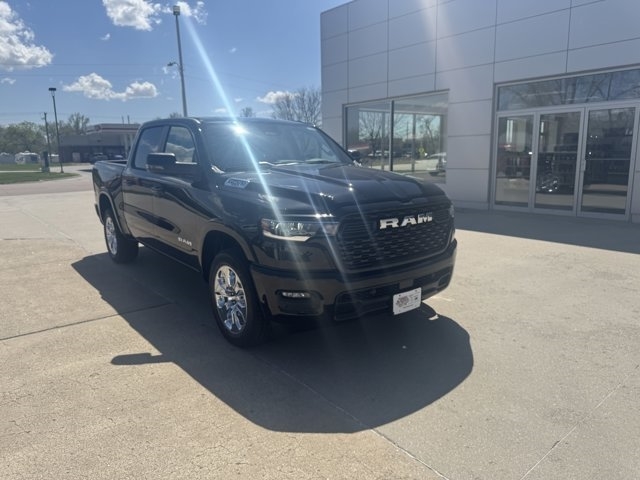 The 2025 Ram 1500 Big Horn Crew Cab 4x4 delivers toughness, comfort, and modern tech wrapped in one impressive package. Equipped with a 3.0L I6 Hurricane SO Twin Turbo engine with Stop/Start and paired with the 8-speed automatic 8HP75 transmission, this truck pushes capability while offering an EPA-estimated *17 MPG city / 24 MPG highway*. Outfitted with heavy-duty shocks front and rear, full safety systems like Blind-Spot and Cross-Path Detection, Adaptive Cruise Control with Stop and Go, and ParkView® Rear Back-Up Camera, it's built for real-world driving. Inside, enjoy deluxe cloth bucket seats, a 12.0-inch Uconnect® 5 Nav touchscreen display, dual-zone automatic climate control, power-adjustable driver seat, heated front seats, and useful extras like a 400W inverter, wireless charging pad, and power tailgate-release. Finished in Diamond Black Crystal Pearl Exterior Paint with 20-inch chrome-clad wheels and a 33-gallon fuel tank, it balances style and utility. With a total MSRP of about *$63,195*, including destination charge, this Big Horn offers premium features without overpromising. Visit Cornhusker Auto Center at *700 E Norfolk Ave, Norfolk, NE 68701* to take a look and see how it fits your needs.