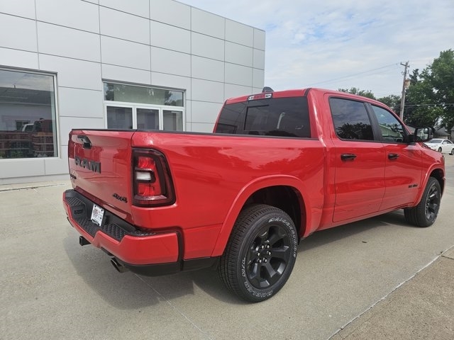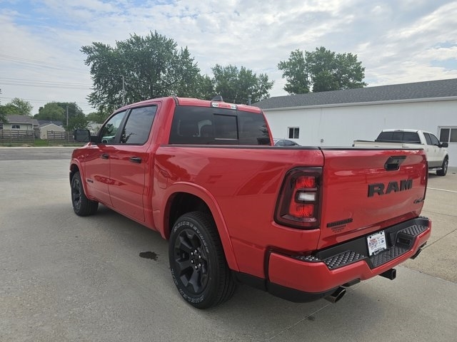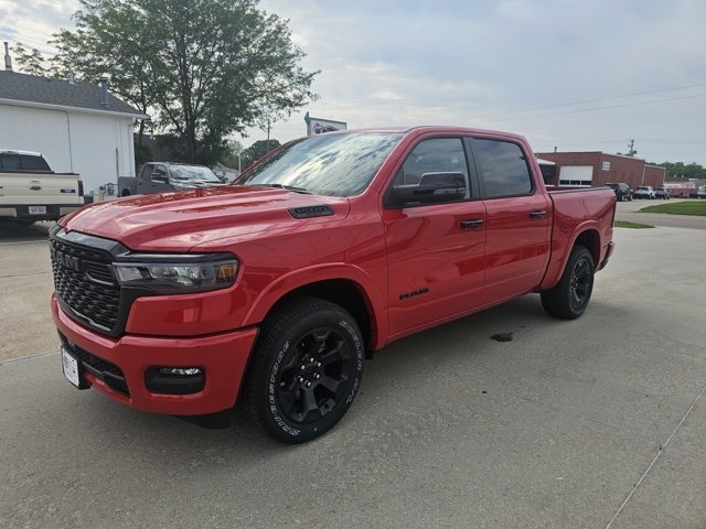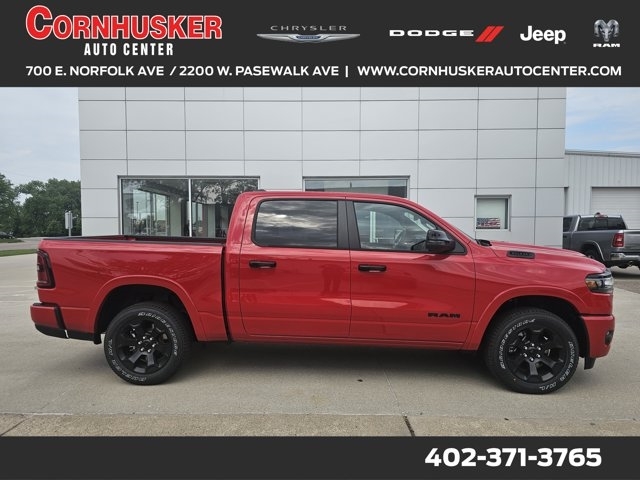The 2025 Ram 1500 Big Horn Crew Cab 4*4 offers a compelling combination of performance, comfort, and advanced features. Powered by the 3.0L I6 Hurricane SO Twin Turbo engine with Stop/Start technology, paired with an 8-speed automatic 8HP75 transmission, it delivers an EPA-estimated *17 MPG city / 24 MPG highway*, making it both powerful and efficient. The exterior is finished in Flame Red Clear-Coat, complemented by 20-inch x 9.0-inch aluminum painted clad wheels wrapped in 275/55R20 OWL all-season tires. Inside, the cabin features deluxe cloth bucket seats in black, a Uconnect® 5 Nav system with a 12.0-inch touchscreen display, and a 7.0-inch TFT color cluster. The Big Horn Level 2 Equipment Group enhances comfort with heated front seats, an 8-way power adjustable driver seat with 2-way power lumbar, dual-zone automatic temperature control, and a leather-wrapped steering wheel. Safety features include adaptive cruise control with stop and go, blind-spot and cross-path detection, ParkSense® front and rear park-assist, and ParkView® rear back-up camera. Additional amenities comprise a 400W inverter, power adjustable pedals, and a power tailgate-release. With a total MSRP of *$62,495*, including destination charge, this Ram 1500 Big Horn offers a well-rounded package for those seeking both capability and comfort. Visit Cornhusker Auto Center at *700 E Norfolk Ave, Norfolk, NE 68701* to see it in person.