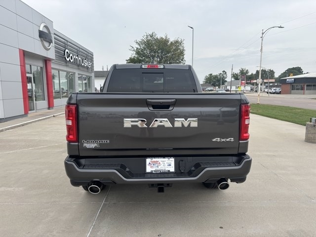 The 2026 RAM 1500 Laramie Crew Cab 4x4 offers a perfect blend of power, technology, and comfort. It is powered by a 3.0L I6 Hurricane Twin-Turbo engine paired with an 8-speed automatic transmission, ensuring strong performance and efficiency. Safety features include Adaptive Cruise Control with Stop and Go, Blind-Spot and Cross-Path Detection, Full-Speed Forward-Collision Warning Plus, ParkSense® Front and Rear Park-Assist, and a ParkView® Rear Back-Up Camera. Inside, the cabin boasts leather-trimmed bucket seats, a 12-inch Uconnect® 5 touchscreen with navigation, Apple CarPlay® and Android Auto? integration, SiriusXM® 360L with a 3-month subscription, and a premium 9-speaker audio system with a subwoofer. Exterior highlights include 20-inch premium painted/polished wheels, LED reflector headlamps with automatic high-beam control, LED fog lamps, chrome power mirrors with auto-fold, and body-color fender flares. Additional conveniences such as power-adjustable driver's seat with memory, heated and ventilated front seats, heated second-row seats, dual-zone automatic climate control, and a power tailgate add to the overall luxury and utility of this pickup. For a must-own new Chrysler, Jeep, Dodge, or Ram, visit Cornhusker Auto Center, 700 E Norfolk Ave, Norfolk, NE 68701---your local new car dealership just minutes away!