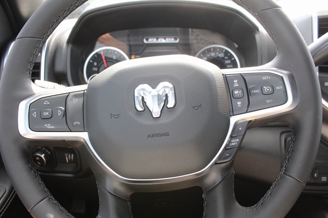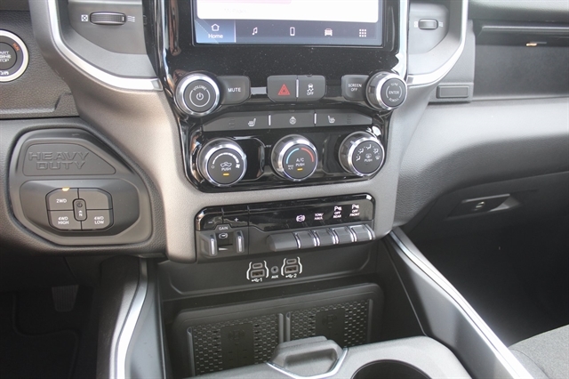 Bed Convenience Group (LED Bed Lighting and MOPAR Spray In Bedliner), Big Horn Level 2 Equipment Group (115V Auxiliary Front Power Outlet, 115V Auxiliary Rear Power Outlet, 2 Way Rear Headrest Seat, 2nd Row In Floor Storage Bins, 4 Way Front Headrests, 400W Inverter, 9 Alpine Speakers w/Subwoofer, Anti-Spin Differential Rear Axle, Auto Power-Folding Mirrors, Auto-Dimming Rear-View Mirror, Black Exterior Mirrors, Blind Spot & Cross Path Detection, Bucket Seats, Cluster 7.0`` TFT Color Display, Dampened Tailgate, Dual Glove Boxes, Dual Wireless Charging Pad, Exterior 115V AC Outlet, Exterior Mirrors Courtesy Lamps, Exterior Mirrors w/Heating Element, Exterior Mirrors w/Supplemental Signals, Foam Bottle Insert (Door Trim Panel), Folding Flat Load Floor Storage, Footwell Courtesy Lamp, Forward & Reverse Utility Lights, Front Seat Back Map Pockets, Full Length Upgraded Floor Console, Glove Box Lamp, Heated Front Seats, Heated Steering Wheel, LED Tail Lamps, Locking Lower Glove Box, Luxury Steering Wheel, Manual Adjust 4-Way Front Passenger Seat, Media Hub w/2 Charge Only USBs, Mirror Running Lights, Power 2-Way Driver Lumbar Adjust, Power Adjust 8-Way Driver Seat, Power Adjust Mirrors, Power Adjustable Convex Aux Mirrors, Power Adjustable Pedals, Power Heated Folding Telescopic Mirrors, Power Telescoping Mirrors, Premium Cloth Bucket Seats, Rear 60/40 Folding Seat, Rear Dome w/On/Off Switch Lamp, Rear Power Sliding Window, Red Tail Lamp Bezels, Remote Start System, Steering Wheel Mounted Audio Controls, Sun Visors w/Illuminated Vanity Mirrors, and Universal Garage Door Opener), Quick Order Package 24Z Big Horn, 3.73 Axle Ratio, 4-Wheel Disc Brakes, 40/20/40 Split Bench Seat, 4G LTE Wi-Fi Hot Spot, 5th Wheel/Gooseneck Towing Prep Group, 6 Speakers, ABS brakes, Air Conditioning, Alloy wheels, AM/FM radio: SiriusXM, Apple CarPlay, Apple CarPlay/Android Auto, Brake assist, Bumpers: chrome, Cloth 40/20/40 Bench Seat, Compass, Connectivity - US/Canada, Delay-off headlights, Driver door bin, Dual front impact airbags, Dual front side impact airbags, Electronic Stability Control, Front anti-roll bar, Front Armrest w/Cupholders, Front Center Armrest w/Storage, Front fog lights, Front reading lights, Fully automatic headlights, Global Telematics Box Module (TBM), Google Android Auto, GPS Antenna Input, Heated door mirrors, Illuminated entry, Integrated Voice Command w/Bluetooth, Low tire pressure warning, Manual Adjust 4-Way Driver Seat, Manufacturer`s Statement of Origin, Occupant sensing airbag, Outside temperature display, Overhead airbag, Overhead console, Panic alarm, ParkView Rear Back-Up Camera, Passenger door bin, Passenger vanity mirror, Power door mirrors, Power steering, Power windows, Radio data system, Radio: Uconnect 5 w/8.4`` Display, Rear anti-roll bar, Rear Folding Seat, Rear seat center armrest, Rear step bumper, Rear window defroster, Remote keyless entry, Remote USB Port - Charge Only, Security system, Selectable Tire Fill Alert, SiriusXM Radio Service, Speed control, Storage Tray, Tachometer, Tilt steering wheel, Traction control, Trip computer, Turn signal indicator mirrors, Variably intermittent wipers, Vinyl 2nd Row Seat, Voltmeter, and Wheels: 18`` x 8.0`` Polished Aluminum.