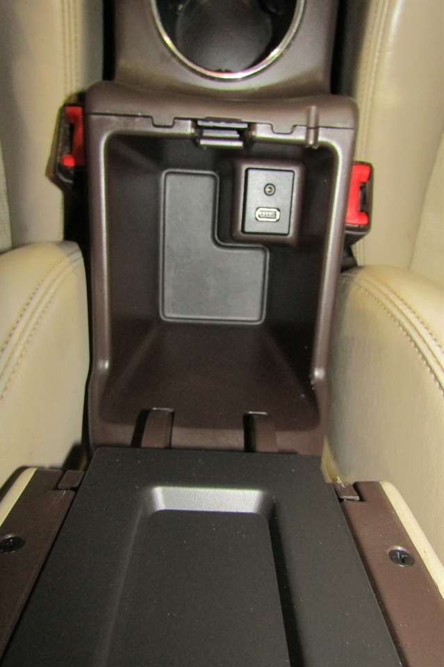 - Armrest, center, rear, articulating with dual cup holders and storage