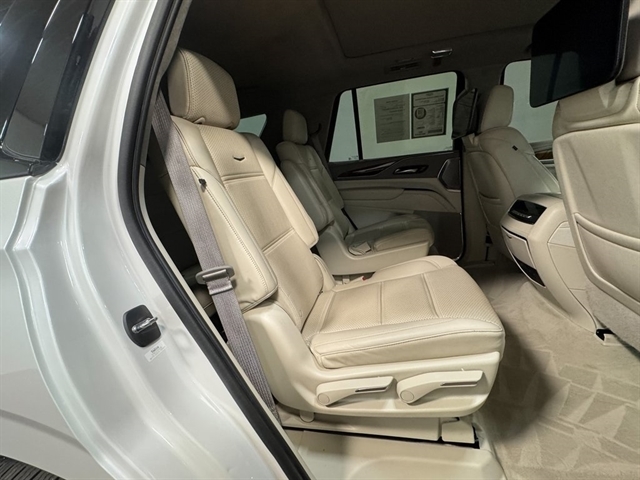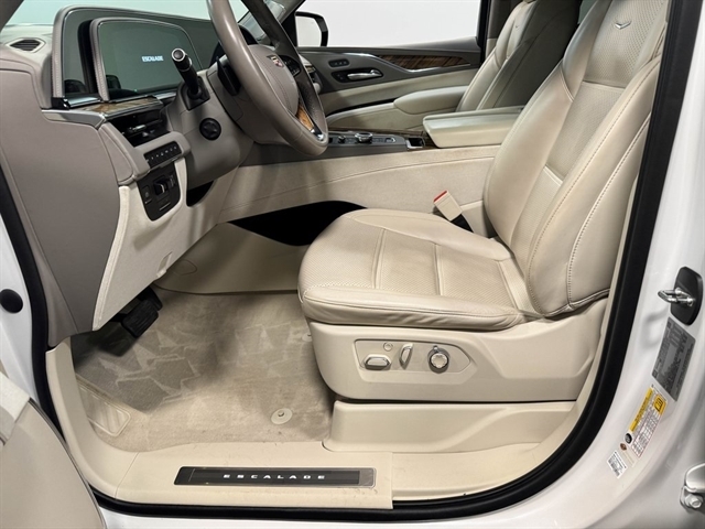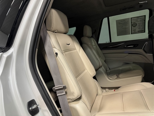 Crystal White Tricoat 2022 Cadillac Escalade Sport Platinum 4WD 10-Speed Automatic 6.2L V8 *Leather Seats, Navigation System, Sunroof/Moonroof, Bluetooth, Backup Camera, Collision Warning System, Active Parking Assist, 360 degree Camera, Adaptive Cruise Control, Heated and Cooled Seats, Blind-Spot Monitors, Lane Keeping Assist, Adaptive Headlights, Touchscreen Controls, Heads-Up Display, Keyless Access with Push Button Start, Automatic Headlights, Apple CarPlay, Android Auto, 3rd Row Seats, Keyless Entry, Multi-zone Climate Control, Steering Wheel Controls, Premium Wheels, Trailer Hitch, Remote Start, 4WD, Whisper Beige w/Gideon Accents w/Full Semi-Aniline Leather Seats, 16.9`` Diagonal OLED Infotainment Screen, Air Ride Adaptive Suspension, AKG Studio Reference 36-Speaker Audio System, Apple CarPlay/Android Auto, Auto-dimming Rear-View mirror, Automatic temperature control, Enhanced Automatic Emergency Braking, Enhanced Automatic Parking Assist, Full Semi-Aniline Leather Seats, Gloss Black Escalade Nameplate (LPO), HD Radio, Heated rear seats, Heated steering wheel, Illuminating Front & Rear Sill Plates, Memory seat, Monochrome Cadillac Emblems (LPO), Navigation System, Onyx Package (LPO), Outside temperature display, Power driver seat, Power Liftgate, Power Panoramic Tilt-Sliding Sunroof, Power passenger seat, Radio: AM/FM/SiriusXM w/Navigation, Rain sensing wipers, Rear air conditioning, Rear Seat Entertainment System, Rear window defroster, SiriusXM w/360L, Soft Closing Front & Rear Doors, Teen Driver, Touring Package, Wheels: 22`` 12-Spoke Gloss Black Alloy (LPO), Wireless Apple CarPlay/Wireless Android Auto.