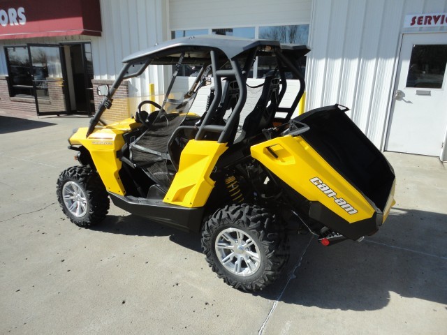 The 2013 Can-Am Commander 800R is a sport-utility UTV featuring a 71-horsepower 799.9cc Rotax V-twin engine with electronic fuel injection (EFI) and CVT transmission. Key specs include selectable 4WD with Visco-Lok differential, 11-inch ground clearance, and a 10-gallon fuel tank.