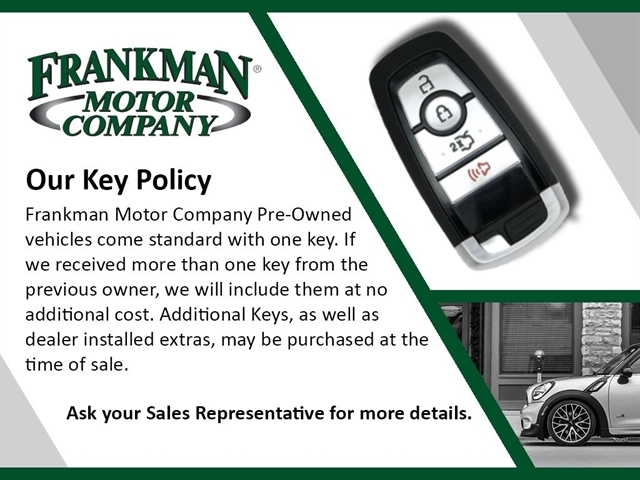 *Prices shown include a one thousand dollar Frankman Finance Incentive Program (Discount eligible on 50% of Loan to Value); Frankman Motor Company started in 1988 as a small family business that has grown from an acreage with a converted 2 stall garage as the office to the largest independent used car dealership in a 5 state area with almost 50,000 vehicles sold and over 50 employees. *All Vehicles at Frankman Motor Company are subject to State of SD Doc Fee of $199 and Frankman Connect 3yr theft deterrent of $399. Odometer is 10272 miles below market average!