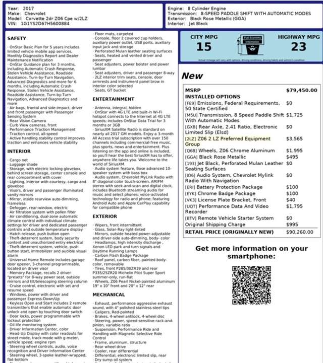 2017 Chevrolet Corvette Z06 Coupe 2LZ 6.2L supercharged 8-spd Auto, 2LZ Equipment Pkg, ZO6 Aluminum Wheels, Performance and Data Video Recorder ORIGINAL MSRP=$90,260. 650 horsepower and 650 lb.-ft. of torque.!!! **WE TAKE ALL TRADES** FINANCING AVAILABLE!! CALL SALES 605 221-4000