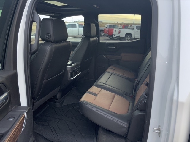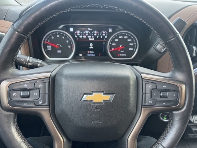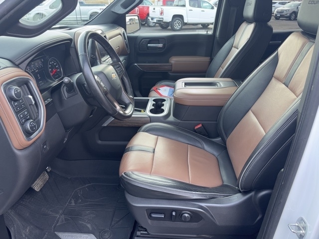 High Country Deluxe (All-Weather Floor Liner (LPO) and Power Sunroof), Preferred Equipment Group 3LZ (10-Way Power Driver Seat w/Lumbar, 10-Way Power Passenger Seat Adjuster w/Lumbar, 12-Volt Rear Auxiliary Power Outlet, 120-Volt Bed Mounted Power Outlet, 120-Volt Instrument Panel Power Outlet, 4G LTE Wi-Fi Hot Spot Capable, 8`` Driver Information Center, Advanced Trailering System, Auto-Dimming Inside Rear-View Mirror, Auto-Locking Rear Differential, Auxiliary External Transmission Oil Cooler, Bluetooth® For Phone, Chevrolet Connected Access Capable, Chevytec Spray-On Black Bedliner, Chrome Assist Steps, Chrome Grille, Chrome Recovery Hooks, Color-Keyed Carpeting Floor Covering, Compass, Deep-Tinted Glass, Driver Memory, Dual Exhaust w/Polished Outlets, Electric Rear-Window Defogger, Electrical Lock Control Steering Column, Electronic Cruise Control, Floor Mounted Center Console, Front Carpeted Floor Mats, Front LED Fog Lamps, HD Rear Vision Camera, Heated Driver & Front Outboard Passenger Seats, Heated Steering Wheel, Hitch Guidance w/Hitch View, Integrated Trailer Brake Controller, Keyless Open & Start, Lane Change Alert w/Side Blind Zone Alert, Leather Wrapped Steering Wheel, LED Cargo Area Lighting, Manual Tilt/Telescoping Steering Column, OnStar & Chevrolet Connected Services Capable, Outside Heated Power-Adjustable Mirrors, Painted Mirror Caps, Power Door Locks, Power Front Passenger Windows w/Express Up/Down, Power Front Windows w/Driver Express Up/Down, Power Rear Windows w/Express Down, Power Sliding Rear Window w/Rear Defogger, Power Tailgate, Rear Carpeted Floor Mats, Rear Cross Traffic Alert, Rear Dual USB Charging-Only Ports, Rear Wheelhouse Liners, Remote Vehicle Starter System, SiriusXM w/360L, Standard Tailgate, Steering Wheel Audio Controls, Theft Deterrent System (Unauthorized Entry), Ultrasonic Front & Rear Park Assist, Universal Home Remote, Ventilated Driver & Front Passenger Seats, Wireless Charging, and Wireless Phone Projection), Safety Package II (Adaptive Cruise Control, Automatic Emergency Braking, Following Distance Indicator, Forward Collision Alert, Front Pedestrian Braking, IntelliBeam Automatic High Beam On/Off, Lane Keep Assist w/Lane Departure Warning, and Safety Alert Seat), Technology Package (15`` Diagonal Multicolor Head-Up Display, Bed View Camera, HD Surround Vision w/2 Trailer View Camera Provisions, and Rear Camera Mirror), Trailering Package (Hitch Guidance), Up-Level Rear Seat w/Storage Package, 10-Speed Automatic, 4WD, Jet Black/Umber Leather, 170 Amp Alternator, 3.23 Rear Axle Ratio, 4-Wheel Disc Brakes, 7 Speakers, ABS brakes, Adaptive Ride Control Suspension, Air Conditioning, Alloy wheels, AM/FM radio: SiriusXM with 360L, Apple CarPlay/Android Auto, Auto-dimming door mirrors, Auto-dimming Rear-View mirror, Automatic temperature control, Brake assist, Bumpers: body-color, Delay-off headlights, Driver door bin, Driver vanity mirror, Dual front impact airbags, Dual front side impact airbags, Electronic Stability Control, Front anti-roll bar, Front Bucket Seats, Front Center Armrest, Front dual zone A/C, Front fog lights, Front License Plate Kit, Front reading lights, Front wheel independent suspension, Fully automatic headlights, Garage door transmitter, Heated door mirrors, Heated front seats, Heated steering wheel, Heavy Duty Suspension, Illuminated entry, Low tire pressure warning, Memory seat, Navigation System, Occupant sensing airbag, Outside temperature display, Overhead airbag, Overhead console, Panic alarm, Passenger door bin, Passenger vanity mirror, Perforated Leather Seat Trim, Power door mirrors, Power driver seat, Power passenger seat, Power steering, Power windows, Power-Retractabl