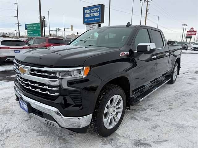 Check out this sleek black 2024 Chevrolet Silverado 1500 LTZ - a Carfax one owner car! With its powerful 5.3L V8 engine and dynamic fuel management system, this beauty is ready to hit the road with the Trailering Package and 4-wheel drive capability. The spacious crew cab offers a comfortable and luxurious interior with heated steering wheel, wireless charging, and plenty of storage options. Keep your passengers and cargo safe with the advanced safety features like Rear Cross Traffic Braking and Safety Alert Seat. The innovative In-Vehicle Trailering App ensures a smooth towing experience, while the Hitch Guidance system makes it a breeze to align your trailer. This Silverado is not just about power and safety it also boasts stylish features like LED lighting, chrome accents, and deep-tinted glass. With only one owner and a Carfax report available, you can have peace of mind knowing you`re getting a top-quality vehicle. Don`t miss out on this incredible truck that combines performance, luxury, and safety in one package! Visit Big City Motors to shop our great deals. You can call 605-338-8001 to schedule your test drive today.