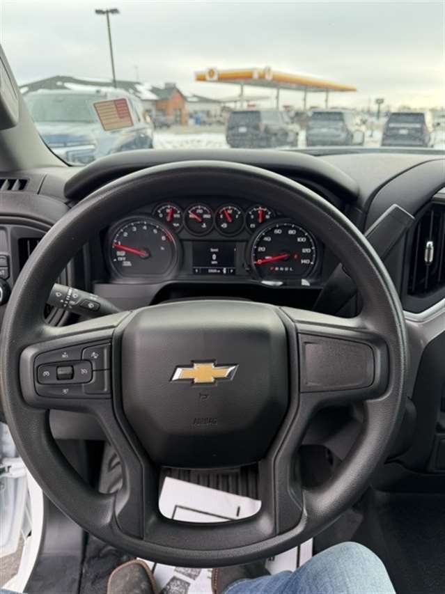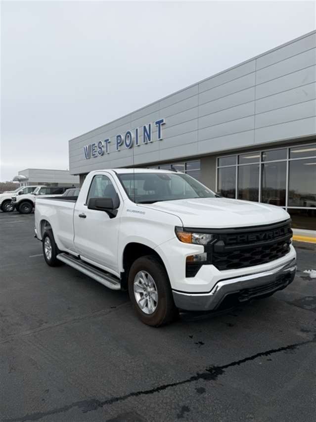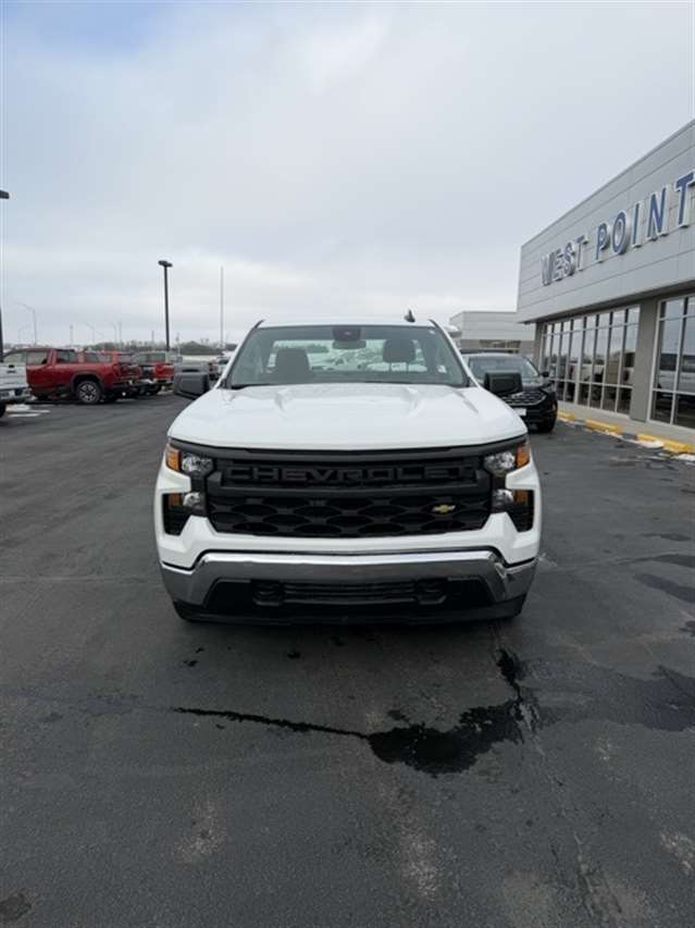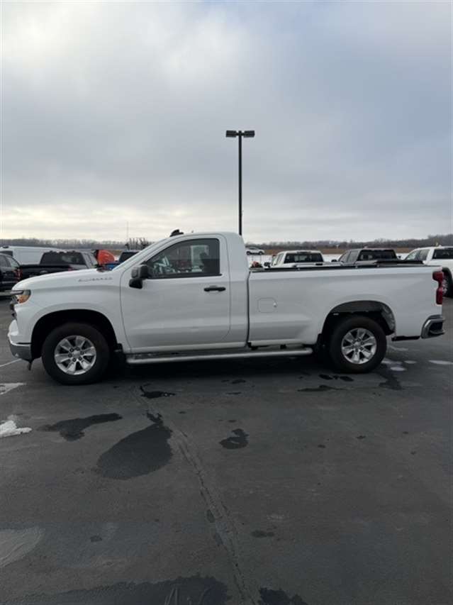 Summit White 2024 Chevrolet Silverado 1500 WT RWD 10-Speed Automatic EcoTec3 5.3L V8 **ONE OWNER**, **CLEAN VEHICLE HISTORY**, 10-Speed Automatic, Black Cloth, 170 Amp Alternator, 2 Speakers, 2-Speaker Audio System, 220 Amp Alternator, 3.23 Rear Axle Ratio, 3.42 Rear Axle Ratio, 3.5`` Monochromatic Display Driver Info Center, 4-Wheel Disc Brakes, 40/20/40 Front Split Bench Seat, ABS brakes, Air Conditioning, Auto High-beam Headlights, Automatic Emergency Braking, Auxiliary External Transmission Oil Cooler, Black (Semi-Gloss) Front Bumper, Black (Semi-Gloss) Rear Bumper, Bluetooth® For Phone, Brake assist, Chevrolet Connected Access Capable, Compass, Delay-off headlights, Driver door bin, Dual front impact airbags, Dual front side impact airbags, Electrical Steering Column Lock, Electronic Cruise Control, Electronic Stability Control, External Engine Oil Cooler, EZ Lift Power Lock & Release Tailgate, Following Distance Indicator, Forward Collision Alert, Front anti-roll bar, Front Center Armrest w/Storage, Front Chrome Bumper, Front Frame-Mounted Black Recovery Hooks, Front Pedestrian Braking, Front reading lights, Front wheel independent suspension, Fully automatic headlights, HD Rear Vision Camera, Heated door mirrors, Heated Power-Adjustable Outside Mirrors, Illuminated entry, Inside Rear-View Mirror w/Tilt, IntelliBeam Automatic High Beam On/Off, Lane Keep Assist w/Lane Departure Warning, Locking Tailgate, Low tire pressure warning, Manual Tailgate Function w/No EZ Lift, Manual Tilt Wheel Steering Column, Occupant sensing airbag, OnStar & Chevrolet Connected Services Capable, Outside temperature display, Overhead airbag, Overhead console, Panic alarm, Passenger door bin, Passenger vanity mirror, Power door mirrors, Power Front Windows w/Driver Express Up/Down, Power Front Windows w/Passenger Express Down, Power steering, Power windows, Preferred Equipment Group 1WT, Premium audio system: Chevrolet Infotainment 3, Radio data system, Radio: Chevrolet Infotainment 3 System, Rear Chrome Bumper, Rear reading lights, Rear step bumper, Remote Keyless Entry, Remote keyless entry, Rubberized-Vinyl Floor Covering, SiriusXM Delete, Solar Absorbing Tinted Glass, Speed-sensing steering, Standard Suspension Package, Standard Tailgate, Tachometer, Tilt steering wheel, Traction control, Trip computer, Variably intermittent wipers, Vinyl Seat Trim, Voltmeter, Wheels: 17`` x 8`` Bright Silver Painted Aluminum, Wheels: 17`` x 8`` Ultra Silver Painted Steel, Wi-Fi Hot Spot Capable, 10-Speed Automatic, Black Cloth.
