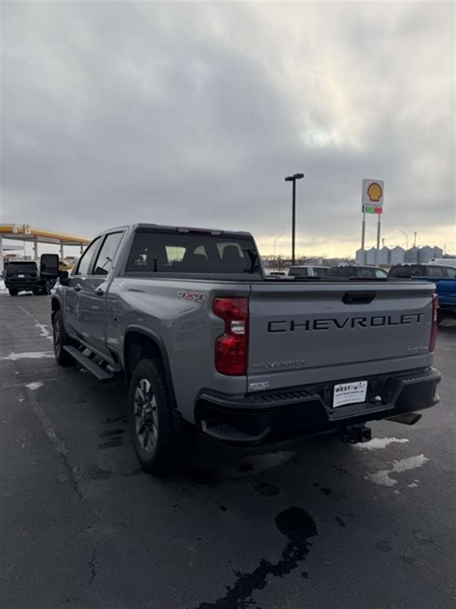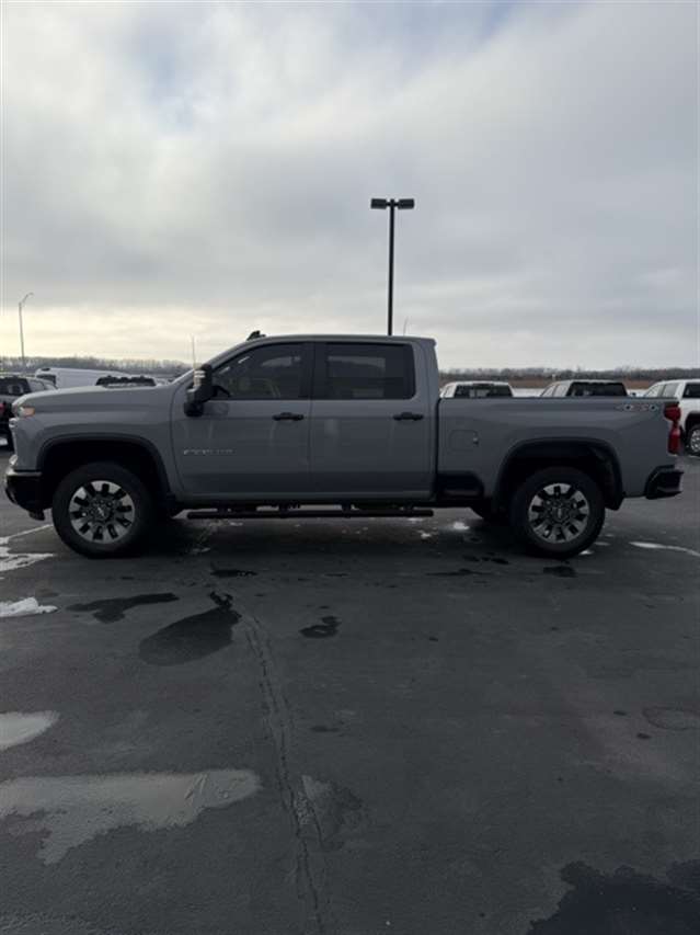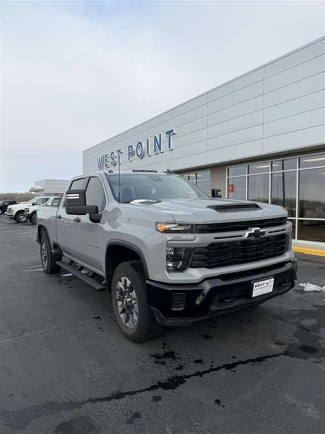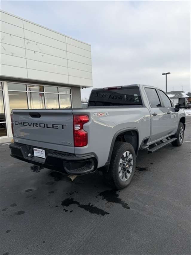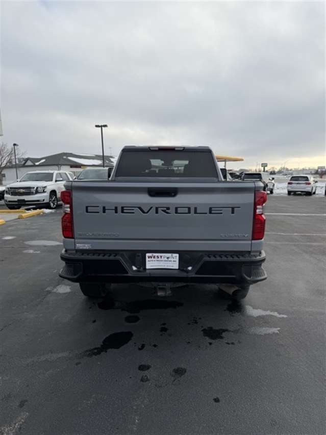 Slate Gray Metallic 2025 Chevrolet Silverado 2500HD Custom 4WD 10-Speed Automatic 6.6L V8 **ONE OWNER**, **CLEAN VEHICLE HISTORY**, **LOCAL TRADE IN**, **ALL SERVICE RECORDS**, 10-Speed Automatic, 4WD, Black Cloth, 170 Amp Alternator, 2-Speed Electronic Shift Transfer Case, 3.5`` Diagonal Monochromatic Display DIC, 3.73 Rear Axle Ratio, 4-Wheel Disc Brakes, 6 Speakers, 6-Speaker Audio System, 720 Cold-Cranking Amps Heavy-Duty Battery, ABS brakes, Air Conditioning, Alloy wheels, AM/FM radio: SiriusXM with 360L, Apple CarPlay/Android Auto, Auto High-beam Headlights, Black Chevytec Spray-on Bedliner, Black Mirror Caps, Bluetooth® For Phone, Brake assist, Chevrolet Connected Access Capable, Cloth Seat Trim, Color-Keyed Carpeting Floor Covering, Compass, Deep-Tinted Glass, Delay-off headlights, Deleted Mobile Service Plus, Driver door bin, Dual front impact airbags, Dual front side impact airbags, Durabed Pickup Bed, Electronic Cruise Control with Set and Resume Speed, Electronic Stability Control, Emergency communication system: OnStar, Front 40/20/40 Split-Bench Seats with Lockable Storage, Front anti-roll bar, Front Center Armrest w/Storage, Front License Plate Kit, Front reading lights, Front Rubberized Vinyl Floor Mats, Front wheel independent suspension, Fully automatic headlights, Gooseneck/5th Wheel Prep Package, HD Rear Vision Camera, Heated door mirrors, Heated Vertical Trailering Mirrors, Illuminated entry, LED Smoked Amber Roof Marker Lamps, Locking Tailgate, Low tire pressure warning, Manual Tailgate Function with No EZ Lift, Manual Tilt-Wheel Steering Column, Occupant sensing airbag, OnStar Services Capable, Outside temperature display, Overhead airbag, Overhead console, Panic alarm, Passenger door bin, Passenger vanity mirror, Power Door Locks, Power door mirrors, Power Front Windows with Driver Express Up/Down, Power Front Windows with Passenger Express Down, Power Rear Windows with Express Down, Power steering, Power windows, Preferred Equipment Group 1CX, Premium audio system: Chevrolet Infotainment 3, Push Button Start, Radio: Chevrolet Infotainment 3 System, Rear 60/40 Folding Bench Seat (folds Up), Rear reading lights, Rear Rubberized Vinyl Floor Mats, Rear step bumper, Remote Keyless Entry, Remote keyless entry, SiriusXM with 360L Trial Subscription, Speed control, Split folding rear seat, Standard Tailgate, Suspension Package, Tachometer, Tilt steering wheel, Traction control, Trip computer, Turn signal indicator mirrors, Variably intermittent wipers, Voltmeter, Wheels: 20`` 10-Spoke Machined Aluminum, Wi-Fi Hotspot Capable, Wireless Phone Projection, 10-Speed Automatic, 4WD, Black Cloth.