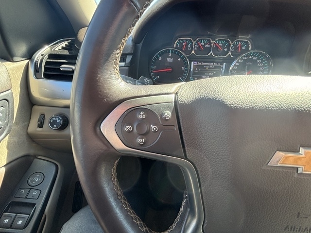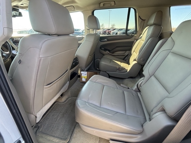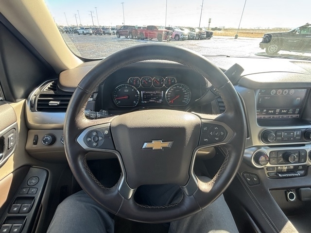 License Plate Front Mounting Package, Max Trailering Package (2-Speed Active Electronic AutoTrac Transfer Case and Integrated Trailer Brake Controller), Preferred Equipment Group 1LT (1st & 2nd Row Color-Keyed Carpeted Floor Mats, 2nd Row 60/40 Split-Folding Manual Bench, 3rd Row Manual 60/40 Split-Folding Fold Flat Bench, 4-Wheel Antilock Disc Brakes, 5 12-Volt Auxiliary Power Outlets, Auto-Dimming Inside Rear-View Mirror, Black Assist Steps, Bose Premium 9-Speaker System, Color-Keyed Carpeting Floor Covering, Driver Inboard & Front Passenger Airbags, Electronic Cruise Control w/Set & Resume Speed, Enhanced Driver Instrument Information Display, Extended-Range Remote Keyless Entry, Floor Console, Leather-Wrapped Steering Wheel, Memory Settings, OnStar Basic Plan For 5 Years, Power Liftgate, Power-Adjustable Accelerator & Brake Pedals, Rear Park Assist w/Audible Warning, Roof-Mounted Luggage Rack Side Rails, SiriusXM Satellite Radio, and Universal Home Remote), Premium Smooth Ride Suspension Package, Standard Suspension Package, 4WD, Cocoa/Dune Leather, 18`` x 8.5`` Aluminum Wheels, 2nd Row Manual Bucket Seats, 3rd row seats: split-bench, 4-Wheel Disc Brakes, 6-Way Power Front Passenger Seat Adjuster, 9 Speakers, ABS brakes, Adjustable pedals, Air Conditioning, Alloy wheels, AM/FM radio: SiriusXM, Apple CarPlay, Auto High-beam Headlights, Auto-dimming Rear-View mirror, Automatic temperature control, Brake assist, Bumpers: body-color, CD player, Compass, Delay-off headlights, Driver door bin, Driver vanity mirror, Dual front impact airbags, Dual front side impact airbags, Electronic Stability Control, Emergency communication system: OnStar, Exterior Parking Camera Rear, Forward Collision Alert Sensor Indicator, Front anti-roll bar, Front Bucket Seats, Front Center Armrest, Front dual zone A/C, Front Heated Reclining Bucket Seats, Front reading lights, Front wheel independent suspension, Fully automatic headlights, Garage door transmitter, Heated door mirrors, Heated front seats, Illuminated entry, IntelliBeam Headlamps, Lane Departure Warning System, Lane Keep Assist, Leather-Appointed Seat Trim, Low tire pressure warning, Memory seat, Occupant sensing airbag, Outside temperature display, Overhead airbag, Overhead console, Panic alarm, Passenger door bin, Passenger vanity mirror, Pedal memory, Power door mirrors, Power driver seat, Power passenger seat, Power steering, Power windows, Premium audio system: Chevrolet MyLink, Radio: Chevrolet MyLink AM/FM Stereo, Rain sensing wipers, Rear air conditioning, Rear anti-roll bar, Rear reading lights, Rear seat center armrest, Rear window defroster, Rear window wiper, Remote keyless entry, Roof rack: rails only, Safety Alert Driver Seat, Security system, Single-Slot CD/MP3 Player, Speed control, Speed-sensing steering, Split folding rear seat, Spoiler, Steering wheel mounted audio controls, Tachometer, Telescoping steering wheel, Tilt steering wheel, Traction control, Trip computer, Unauthorized Entry Electrical Theft Deterrent Sys., Variably intermittent wipers, and Voltmeter.