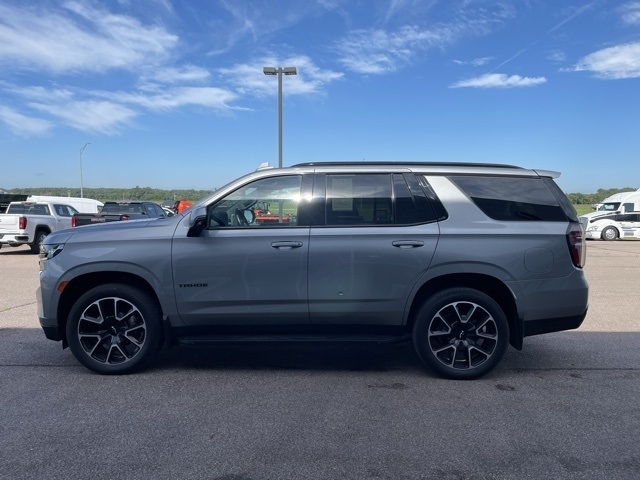 Sterling Gray Metallic 2023 Chevrolet Tahoe RST 4WD 10-Speed Automatic with Overdrive EcoTec3 5.3L V8 **ONE OWNER**, **CLEAN VEHICLE HISTORY**, Heated Leather Seating, Power Liftgate, Power Sunroof, OnStar, Satellite Radio, Leather Seats, 4WD, Jet Black/Victory Red Leather, 10-Way Power Driver & Passenger Seat Adjusters, 1st & 2nd Row Color-Keyed Carpeted Floor Mats, 2nd Row Pwr Release 60/40 Split-Folding Bench Seat, 3.23 Rear Axle Ratio, 3rd Row 60/40 Power-Folding Split-Bench Seat, 3rd row seats: split-bench, 4-Wheel Disc Brakes, 9 Speakers, ABS brakes, Adaptive Cruise Control, Air Conditioning, Alloy wheels, AM/FM radio: SiriusXM with 360L, Apple CarPlay/Android Auto, Auto High-beam Headlights, Auto-Dimming Inside Rear-View Mirror, Auto-dimming Rear-View mirror, Automatic temperature control, Bose 9-Speaker Stereo Audio System Feature, Brake assist, Bright Front & Rear Door Sill Plates, Bumpers: body-color, Color-Keyed Carpeting Floor Covering, Compass, Delay-off headlights, Driver & Front Outboard Passenger Airbags, Driver Alert Package, Driver door bin, Driver vanity mirror, Dual front impact airbags, Dual front side impact airbags, Dual-Pane Power Panoramic Sunroof, Electronic Stability Control, Emergency communication system: OnStar and Chevrolet connected services capable, Enhanced Automatic Emergency Braking, Enhanced Driver Information Center, Floor Console w/Storage Area, Four wheel independent suspension, Front anti-roll bar, Front Bucket Seats, Front Center Armrest, Front dual zone A/C, Front High-Back Reclining Bucket Seats, Front reading lights, Fully automatic headlights, Garage door transmitter, Hands-Free Rear Power Programmable Liftgate, HD Surround Vision, Heated 2nd Row Outboard Seats, Heated door mirrors, Heated Driver & Front Passenger Seats, Heated front seats, Heated Steering Wheel, Illuminated entry, Infotainment Display, Lane Change Alert w/Side Blind Zone Alert, LED Daytime Running Lamps, License Plate Front Mounting Package, Low tire pressure warning, Luxury Package, Memory seat, Memory Settings, Memory Settings for Driver, Molded Splash Guards, Navigation System, Not Equipped w/Wheel Locks (LPO), Occupant sensing airbag, Outside Heated Power-Adjustable Mirrors, Outside temperature display, Overhead airbag, Overhead console, Panic alarm, Passenger door bin, Passenger vanity mirror, Perforated Leather Seat Trim, Power door mirrors, Power driver seat, Power Liftgate, Power passenger seat, Power steering, Power Tilt & Telescopic Steering Column, Power windows, Preferred Equipment Group 1SP, Premium audio system: Chevrolet Infotainment 3 Premium, Premium Smooth Ride Suspension, Radio: Chevrolet Infotainment 3 Premium System, Rain sensing wipers, Rear air conditioning, Rear anti-roll bar, Rear Cross Traffic Alert, Rear Pedestrian Alert, Rear reading lights, Rear seat center armrest, Rear window defroster, Rear window wiper, Remote keyless entry, Remote Start, Roof rack: rails only, Security system, Set of 4 Wheel Locks (LPO), SiriusXM Radio w/360L, Speed control, Speed-sensing steering, Split folding rear seat, Spoiler, Steering wheel mounted audio controls, Tachometer, Telescoping steering wheel, Tilt steering wheel, Traction control, Trip computer, Universal Home Remote, Variably intermittent wipers, Voltmeter, Wheels: 22`` x 9`` Bright Machined, Wireless Charging, Wrapped Steering Wheel, 4WD, Jet Black/Victory Red Leather.
