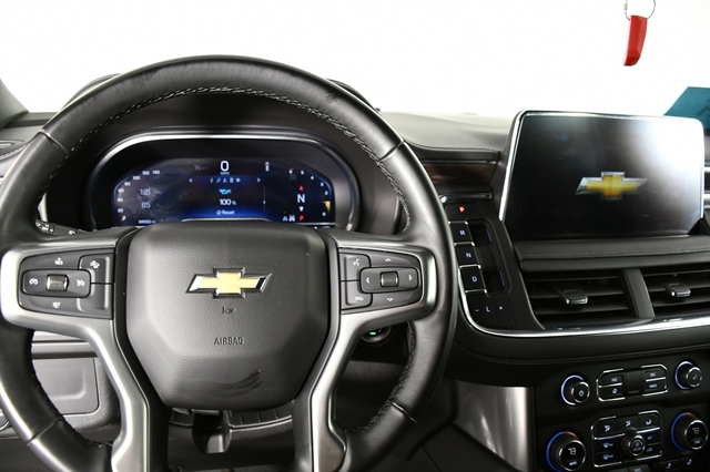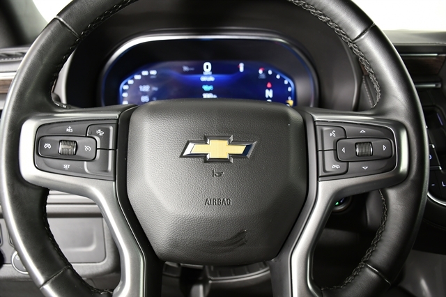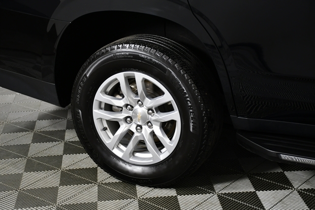 Check out the rest of the great features on this car! License Plate Front Mounting Package, Preferred Equipment Group 1LT (1st & 2nd Row Color-Keyed Carpeted Floor Mats, Auto-Dimming Inside Rear-View Mirror, Bose 9-Speaker Stereo Audio System Feature, Bright Front & Rear Door Sill Plates, Color-Keyed Carpeting Floor Covering, Driver & Front Outboard Passenger Airbags, Enhanced Driver Information Center, Floor Console w/Storage Area, Hands-Free Rear Power Programmable Liftgate, LED Daytime Running Lamps, Memory Settings for Driver, Remote Start, SiriusXM w/360L, Universal Home Remote, Wireless Charging, and Wrapped Steering Wheel), 4WD, Black Leather, 10-Way Power Driver & Passenger Seat Adjusters, 3.23 Rear Axle Ratio, 3rd row seats: split-bench, 4-Wheel Disc Brakes, 9 Speakers, ABS brakes, Air Conditioning, Alloy wheels, AM/FM radio: SiriusXM with 360L, Apple CarPlay/Android Auto, Auto High-beam Headlights, Auto-dimming Rear-View mirror, Automatic temperature control, Brake assist, Bumpers: body-color, Compass, Delay-off headlights, Deleted 3 Years of OnStar Remote Access, Driver door bin, Driver vanity mirror, Dual front impact airbags, Dual front side impact airbags, Electronic Stability Control, Emergency communication system: OnStar and Chevrolet connected services capable, Four wheel independent suspension, Front anti-roll bar, Front Bucket Seats, Front Center Armrest, Front dual zone A/C, Front High-Back Reclining Bucket Seats, Front reading lights, Fully automatic headlights, Garage door transmitter, Heated door mirrors, Heated Driver & Front Passenger Seats, Heated front seats, Illuminated entry, Infotainment Display, Leather-Appointed Seat Trim, Low tire pressure warning, Memory seat, Navigation System, Occupant sensing airbag, Outside temperature display, Overhead airbag, Overhead console, Panic alarm, Passenger door bin, Passenger vanity mirror, Power door mirrors, Power driver seat, Power Liftgate, Power passenger seat, Power steering, Power windows, Premium audio system: Chevrolet Infotainment 3 Premium, Premium Smooth Ride Suspension, Radio: Chevrolet Infotainment 3 Premium System, Rain sensing wipers, Rear air conditioning, Rear anti-roll bar, Rear reading lights, Rear seat center armrest, Rear window defroster, Rear window wiper, Remote keyless entry, Roof rack: xxxxxx, Security system, Speed control, Speed-sensing steering, Split folding rear seat, Spoiler, Steering wheel mounted audio controls, Tachometer, Telescoping steering wheel, Tilt steering wheel, Traction control, Trip computer, Variably intermittent wipers, Voltmeter, and Wheels: 18 x 8.5 Bright Silver Painted Aluminum.