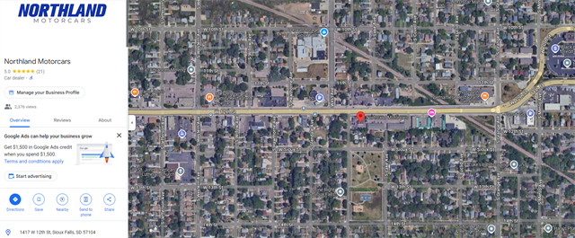 Northland Motorcars serves South Dakota, Iowa, Minnesota, Nebraska and The Surrounding Area. All vehicles are Fully Serviced & Inspected! Please Contact Us For Your No Hassle Experience and Save Time In The Store By Starting The Process Online. We Look Forward To Taking Care Of Your Car Needs Today and In The Future! Free Carfax Report! Financing (WAC) and Vehicle Service Contract Options Available! Come Stop By, Call Us at 605-988-8805 or Schedule Your Test Drive Online Today! All Trades Welcome! We make the buying experience painless and pleasant with our aggressive market pricing. Located at 1417 W 12th St Sioux Falls SD 57104.