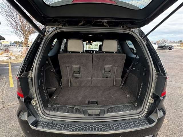 Blacktop Package (Gloss Black Badges, Gloss Black Exterior Mirrors, GT Gloss Black Badging, Satin Black Dodge Tail Lamp Badge, and Wheels: 20`` x 8.0`` Black Noise Aluminum), Quick Order Package 2BE GT Plus (115V Auxiliary Power Outlet, 180 Amp Alternator, Auto-Dimming Exterior Driver Mirror, Dual Remote USB Port - Charge Only, Exterior Mirrors w/Memory, Exterior Mirrors w/Supplemental Signals, Heated Front Seats, Heated Second Row Seats, Heated Steering Wheel, Leather Suede Bucket Seats, Power 6x9 Multi-Function Foldaway Mirrors, Power 8-Way Driver Memory 6-Way Passenger Seats, Power Driver/Passenger 4-Way Lumbar Adjust, Power Liftgate, Radio/Driver Seat/Mirrors Memory, Remote Start System, Security Alarm, Sun Visors w/Illuminated Vanity Mirrors, Tungsten Accent Stitching, and Universal Garage Door Opener), AWD, 2nd Row Fold/Tumble Captain Chairs, 2nd Row Mini Console w/Cupholders, 2nd Row Seat Mounted Inboard Armrests, 3.45 Rear Axle Ratio, 3rd Row Floor Mat & Mini Console, 3rd row seats: split-bench, 4-Wheel Disc Brakes, 6 Speakers, 6-Passenger Seating, ABS brakes, Air Conditioning, Alloy wheels, AM/FM radio: SiriusXM, Anti-whiplash front head restraints, Apple CarPlay, Apple CarPlay/Android Auto, Auto-dimming Rear-View mirror, Automatic temperature control, Brake assist, Bumpers: body-color, Cloth Bucket Seats w/Shift Insert, Compass, Delay-off headlights, Driver door bin, Driver vanity mirror, Dual front impact airbags, Dual front side impact airbags, Electronic Stability Control, Four wheel independent suspension, Front anti-roll bar, Front Bucket Seats, Front Center Armrest w/Storage, Front dual zone A/C, Front fog lights, Front License Plate Bracket, Front reading lights, Fully automatic headlights, Google Android Auto, GPS Antenna Input, Heated door mirrors, Illuminated entry, Integrated Center Stack Radio, Integrated Voice Command w/Bluetooth, Knee airbag, Leather steering wheel, Low tire pressure warning, Occupant sensing airbag, Outside temperature display, Overhead airbag, Overhead console, Panic alarm, ParkView Rear Back-Up Camera, Passenger door bin, Passenger vanity mirror, Power door mirrors, Power driver seat, Power steering, Power windows, Radio data system, Radio: Uconnect 4 w/8.4`` Display, Rear air conditioning, Rear anti-roll bar, Rear reading lights, Rear seat center armrest, Rear window defroster, Rear window wiper, Remote keyless entry, SiriusXM Satellite Radio, Speed control, Speed-sensing steering, Speed-Sensitive Wipers, Split folding rear seat, Spoiler, Steering wheel mounted audio controls, Tachometer, Telescoping steering wheel, Tilt steering wheel, Traction control, Trip computer, Tungsten Interior Accent Stitch, USB Host Flip, Variably intermittent wipers, Voltmeter, and Wheels: 20`` x 8.0`` Fine Silver.