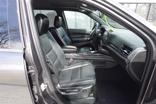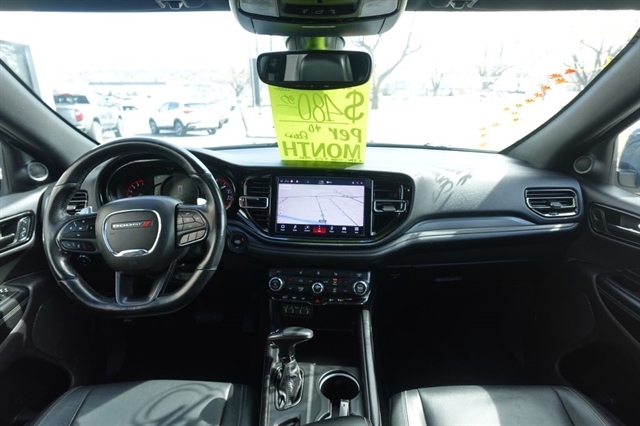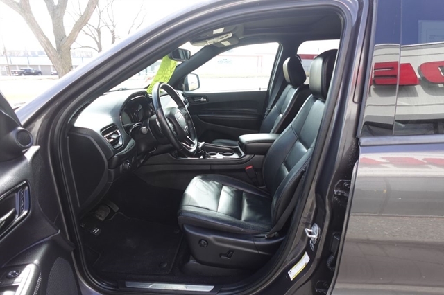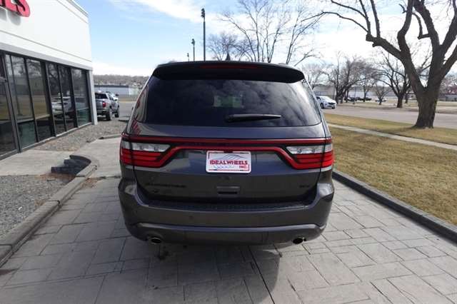 Check out this sweet Durango just in and this Bad Boy definitely stands out in a crowded field of SUV's. The Durango fills the needs for people who want a capable SUV with a 3rd seat but don't want to drive one of those oversized gas guzzlers. The options on this unit include the 3.6L 290hp V6, GT Package, Blacktop Package, Sunroof, Navigation, Rear View Camera, 10''Touch Screen Audio/Climate Controls, Leather Seats, Heated Seats, Heated Steering Wheel, 2nd Row Bucket Seats, 20'' Hyper Black Wheels, Gloss Black Grille, Gloss Black Exterior Mirrors, Tow Package, Sirius Radio and a long list of Standard Power and Safety Features. We offer bank financing with excellent rates and terms right here at the dealership, stop and see why so many people will only purchase their used vehicles from Ideal Wheels with the original Ideal Advantage which provides no labor charge on most repairs.