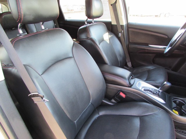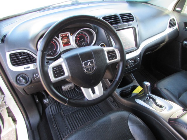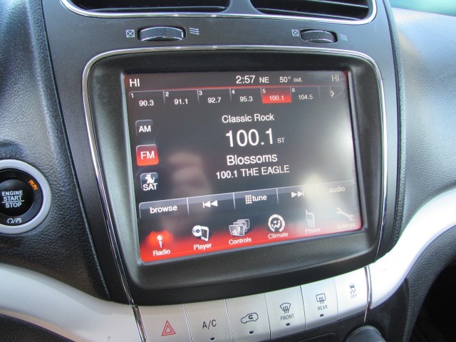 Inside, you'll find a refined and spacious cabin featuring leather-trimmed seating, heated front seats, a power driver seat, and a premium sound system. The Uconnect® touchscreen infotainment system includes Bluetooth® connectivity, steering wheel audio controls, and multiple media inputs to keep everyone connected and entertained. With available third-row seating and flexible cargo space, the Journey easily adapts to passengers and gear alike.