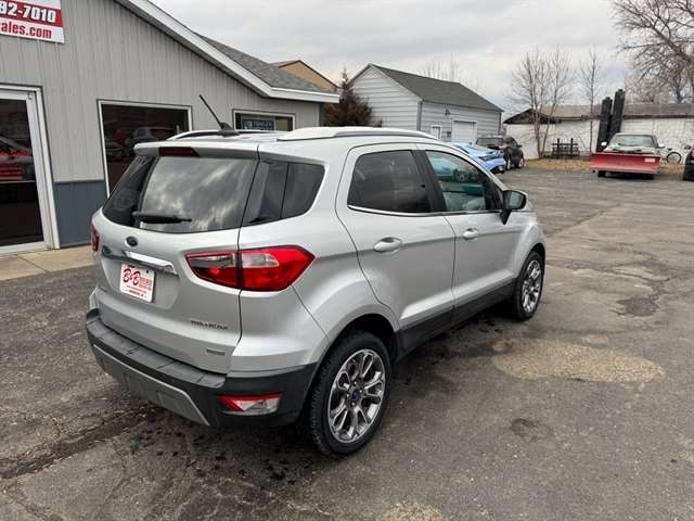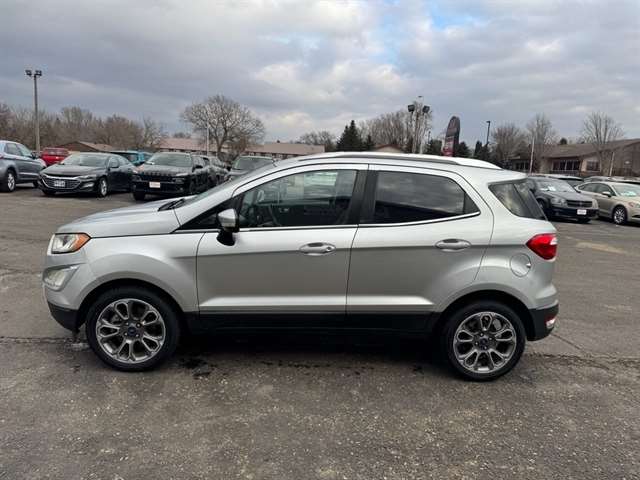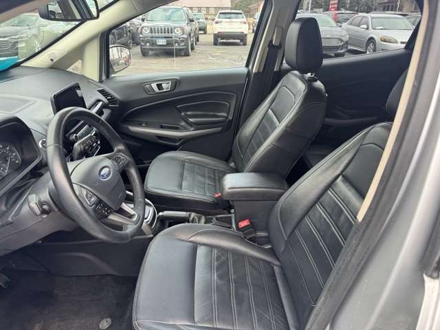 2020 Ford EcoSport Titanium — located in Brookings, SD — delivers compact versatility, efficient performance, and upscale features at the best price. Powered by a responsive 3-cylinder 1.0L gasoline engine with front-wheel drive, this Ford EcoSport balances fuel economy with urban agility, making it ideal for daily commuting and weekend escapes. The Titanium trim elevates comfort and convenience with leather seats that provide premium support and easy-care surfaces for busy lifestyles. Tech-forward amenities include Apple CarPlay and hands-free Bluetooth for seamless smartphone integration and safer, distraction-free calling and media control. A heated steering wheel adds warmth and comfort during chilly South Dakota mornings, while rear parking sensors assist with precise maneuvering in tight spaces and crowded lots. Inside, the cabin offers a thoughtful layout with user-friendly controls and ample cargo flexibility for groceries, gear, or luggage. Safety and confidence are enhanced by driver-focused features and a compact footprint that's easy to park and navigate. This Ford EcoSport Titanium presents exceptional value—priced to sell and positioned as the best-priced option in the area. Located in Brookings, SD, this 2020 Ford EcoSport Titanium is ready for a test drive. Contact us to schedule a viewing or for more details about financing and vehicle history. Don't miss this opportunity for a feature-rich compact SUV at the best price.