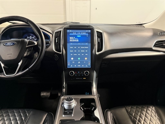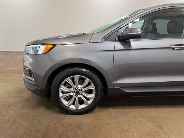 Gray Metallic 2024 Ford Edge Titanium AWD 8-Speed Automatic EcoBoost 2.0L I4 GTDi DOHC Turbocharged VCT Leather Seats, Navigation System, Bluetooth, Backup Camera, Heated Seats, Blind-Spot Monitors, Lane Keeping Assist, Touchscreen Controls, Keyless Access with Push Button Start, Automatic Headlights, Apple CarPlay, Android Auto, Keyless Entry, Multi-zone Climate Control, Steering Wheel Controls, Premium Wheels, Remote Start, AWD, 12 Speakers, ActiveX-Trimmed Heated Sport Bucket Seats, Auto-dimming Rear-View mirror, Automatic temperature control, Brake assist, Delay-off headlights, Equipment Group 300A, FordPass Connect, Four wheel independent suspension, Front Bucket Seats, Front dual zone A/C, Front fog lights, Fully automatic headlights, Garage door transmitter, Heated door mirrors, Heated front seats, Heated steering wheel, Illuminated entry, Leather steering wheel, Memory seat, Power door mirrors, Power Liftgate, Radio: B&O Sound System by Bang & Olufsen, Rain sensing wipers, Rear window defroster, Rear window wiper, Remote keyless entry, SiriusXM w/360L, Split folding rear seat, Spoiler, Steering wheel mounted audio controls, SYNC 4A w/Enhanced Voice Recognition, Turn signal indicator mirrors.
