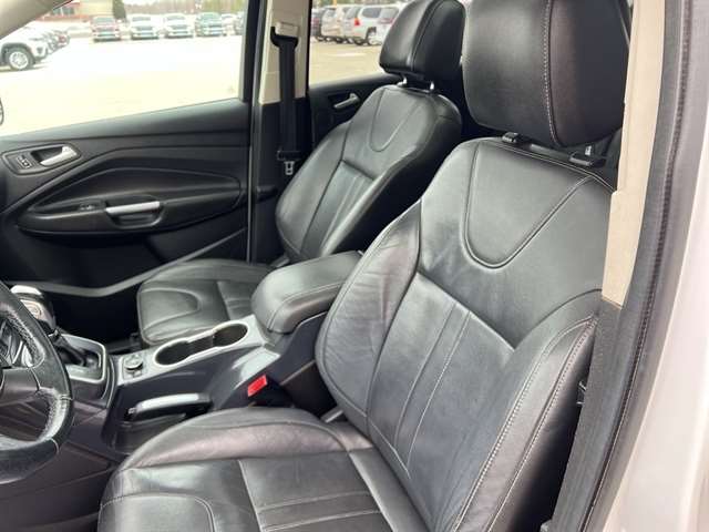 This unit will allow to see the road and so much more with the HID headlights. Start it from inside with remote start. The leather seats in the vehicle are a must for buyers looking for comfort, durability, and style. This unit keeps you comfortable with Auto Climate. The rear parking assist technology on the Ford Escape will put you at ease when reversing. The system alerts you as you get closer to an obstruction. It embodies class and sophistication with its refined white exterior. When you encounter slick or muddy roads, you can engage the four wheel drive on the Ford Escape and drive with confidence. Load groceries and much more with ease into this unit thanks to the power liftgate. This 2013 Ford Escape has a 4 Cyl, 2.0L high output engine. Maintaining a stable interior temperature in the Ford Escape is easy with the climate control system.