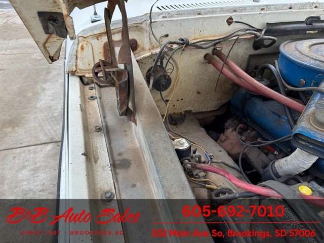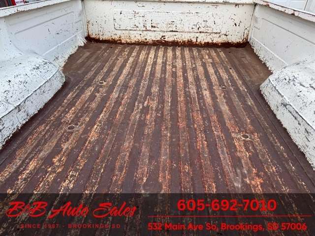 Here is a truck that will make a great running project. It has been sitting for a while and runs and drives. Engine runs rough, and has blow by will need some work. We have had it in our shop and we did a compression check and replaced the carburetor. A pretty solid truck for being a northern truck but does have some rust and windshield is broken. Rust in the usual places. Interior would need dash pad, seat, door panels and floor mat. Call or text Dirk for videos, 605-695-7391. Any questions call or text Dirk or Darren 605-695-9555.