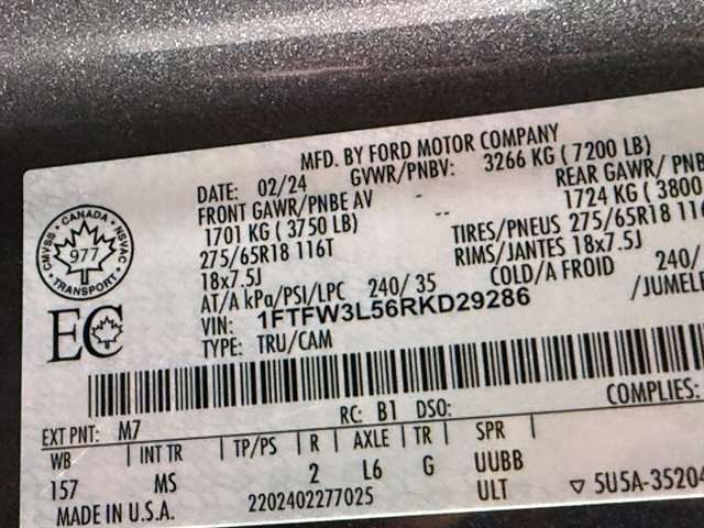 VIN 1FTFW3L56RKD29286