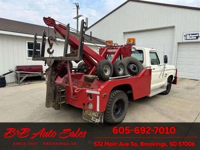 *390 V8*Holmes 440 Wrecker Body*2WD*4 SPeed MECHANICAL- This F350 has gone thru our inspection.*New Rear Brakes and Cylinders*Fixed E brake*Fuel gauge inop*Horn inopEXTERIOR- The body is in good shape. It has had a repaint at one time and looks good . There are a few scratches on the wrecker body from being used but still a very nice looking retro wrecker. See the video for an up close inspection. Text Dirk at 605-695-7391 for running and driving video`sINTERIOR- The interior is in good shape.DIRK`S COMMENTS- With 38 years of experience I will give you my opinion of the F350. It is a cool truck and would make a great conversation piece that is a useable wrecker. UNDERNEATH- The underneath is solid with no major rust issues. History- A truck from western North Dakota.TEST DRIVE- We personally test drive our vehicles so we know what they drive like. I have drove this one 10 miles and it drives good.Located in White,SDBUY WITH CONFIDENCE as this 1973 Ford F350 has gone thru inspection and test drive. We personally work and drive these ourselves so can answer any questions you may have. We show you any issues with over 100 pictures and videos of a walk around, running and driving.VALUE- We price our vehicles to market value and try to be one of the best prices of vehicles in comparable condition. Our goal is to give you a good buy on a vehicle you are going to have fun with and enjoy. We do have a document fee but only $50 which is lower than most other dealers.LIKE IT OR RETURN IT- As being in business for 38 years we do not want to sell anybody a vehicle they do not want. As many of our vehicles are sold site unseen we will take the vehicle back and give a refund minus shipping and a restocking fee. You are responsible for the shipping both ways and a $1000 restocking fee. You have 3 days to notify us you are not happy with the vehicle and we will start the return process. Ask for more details.VIDEOS- Call, text or email for videos of driving the vehicle and of the engine running and accessories working. Text Dirk at 605-695-7391. Click here to apply for financing: Credit App Call or text Dirk at 605-695-7391 or Darren 605-695-9555 with any questions. B and B Auto Sales, 324 W Main White, SD 57276
