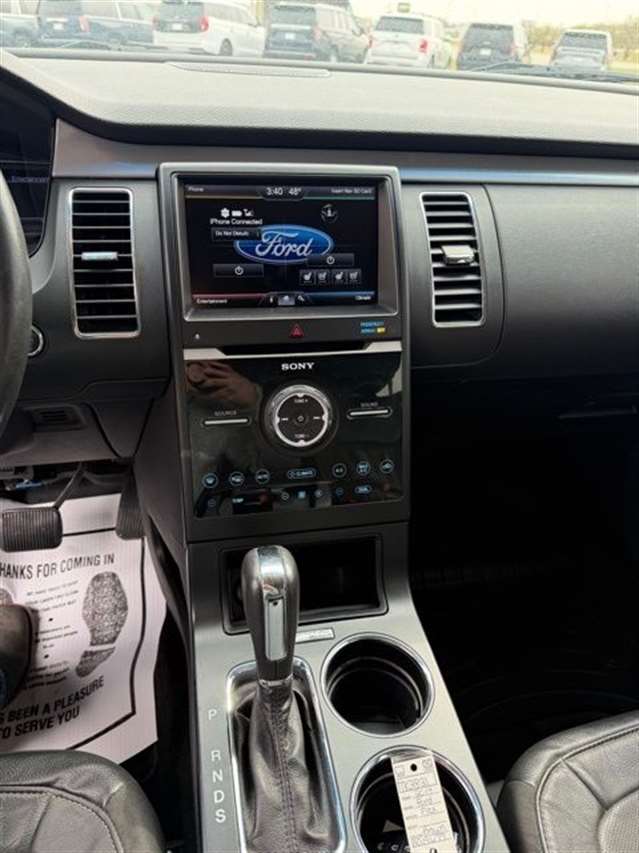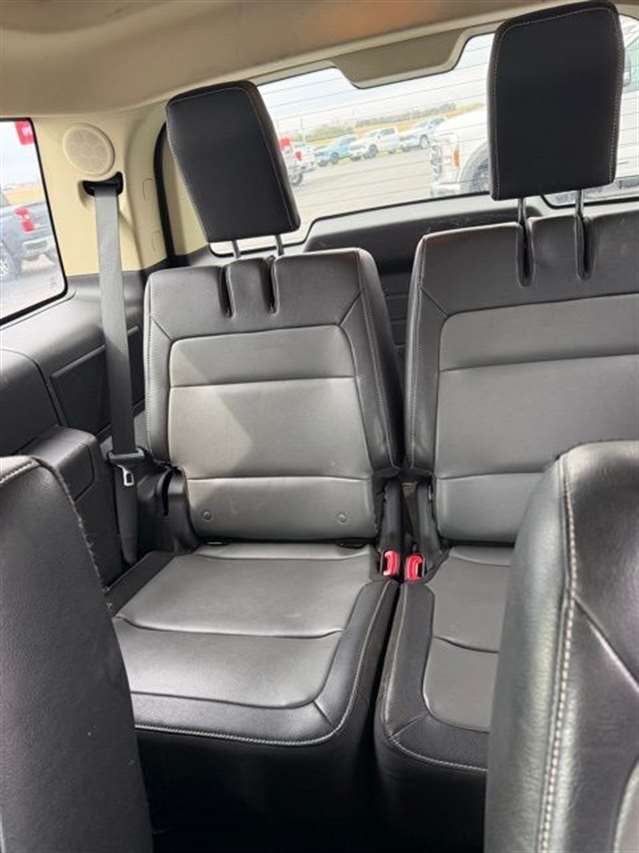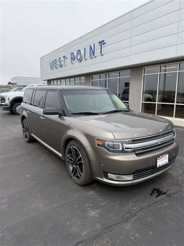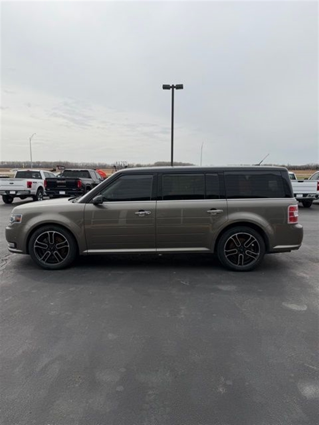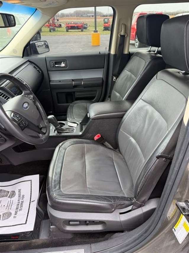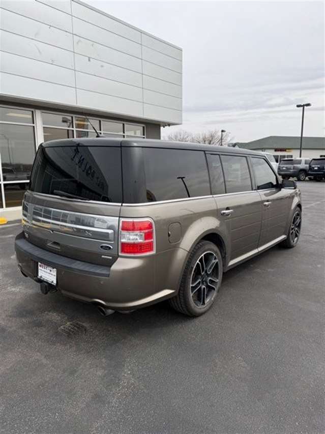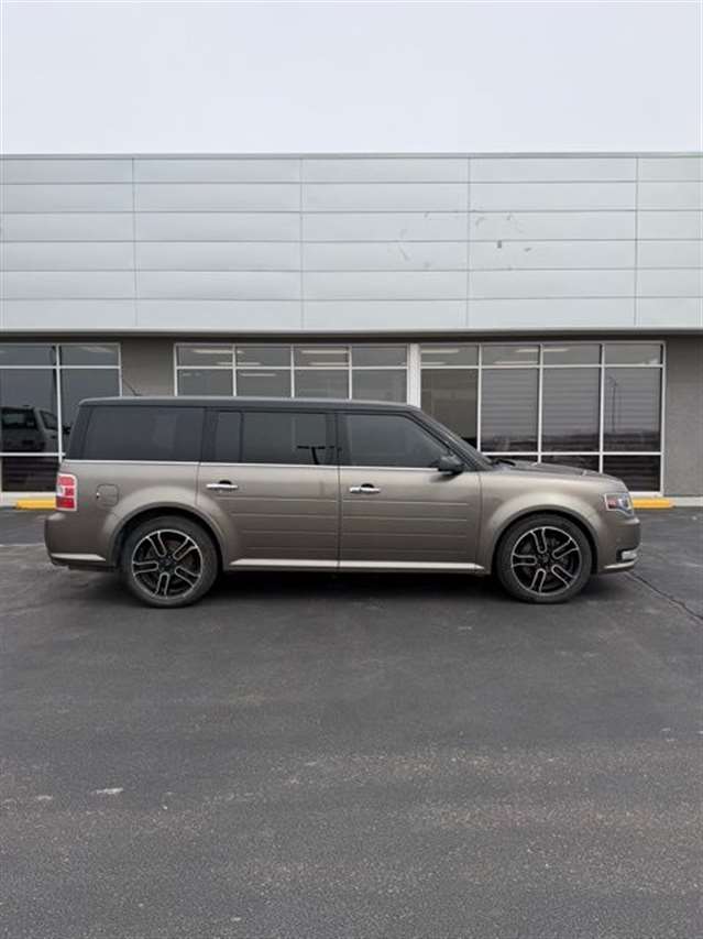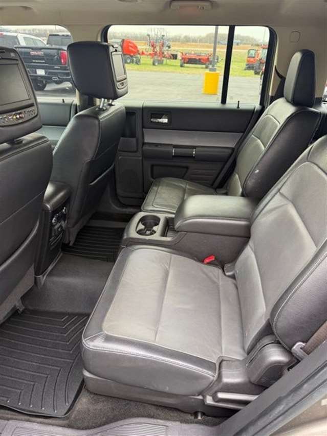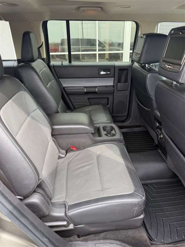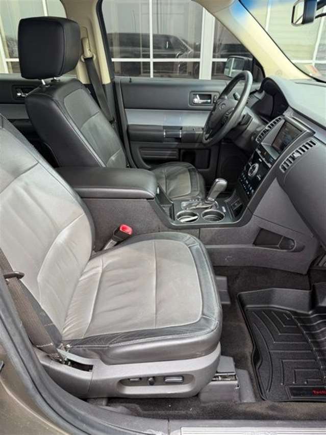Mineral Gray Metallic 2014 Ford Flex Limited w/EcoBoost AWD 6-Speed Automatic with Select-Shift 3.5L V6 DVD Player, Navigation, Heated Leather Seating, Power Liftgate, Power Sunroof, Satellite Radio, Leather Seats, Rear Bucket Seats, AWD, 1-Touch PowerFold & Tumble 3rd Row Fold Flat Bench, 10-Way Power Heated Cooled Driver/Passenger Seat, 12 Speakers, 20`` Polished Aluminum Wheels, 2nd Row Refrigerated Console, 3.16 Axle Ratio, 3rd row seats: split-bench, 4-Wheel Disc Brakes, ABS brakes, Active Park Assist, Adaptive Cruise Control w/Collision Mitigation, Adjustable pedals, Air Conditioning, All-Weather Floor Mats, Alloy wheels, AM/FM radio: SiriusXM, Appearance Package, Auto-dimming Rear-View mirror, Automatic temperature control, Black Painted Roof, Brake assist, Bumpers: body-color, CD player, Class III Trailer Tow Package, Compass, Delay-off headlights, Driver door bin, Driver vanity mirror, Dual front impact airbags, Dual front side impact airbags, DVD Headrest (Pre-Installed), Electronic Stability Control, Equipment Group 303A, Exterior Mirror Caps Painted Black, Exterior Parking Camera Rear, Floor Mats w/Unique Logo, Four wheel independent suspension, Front anti-roll bar, Front Bucket Seats, Front Center Armrest, Front dual zone A/C, Front fog lights, Front reading lights, Fully automatic headlights, Garage door transmitter, Heated door mirrors, Heated front seats, High-Intensity Discharge Headlights, Illuminated entry, Leather steering wheel, Leather-Trimmed Bucket Seats w/Perforated Inserts, Leather-Wrapped Steering Wheel, Low tire pressure warning, Memory seat, Multi-Panel Vista Roof, Navigation System, Occupant sensing airbag, Outside temperature display, Overhead airbag, Overhead console, Panic alarm, Passenger door bin, Passenger vanity mirror, Pedal memory, Perforated Leather 2nd Row Heated Reclining Seats, Perforated Leather-Trimmed Bucket Seats, Power door mirrors, Power driver seat, Power Liftgate, Power passenger seat, Power steering, Power Tilt & Telescopic Steering Column, Power windows, Premium audio system: Sony, Radio data system, Radio: AM/FM/HD Single CD/MP3 Capable, Rain sensing wipers, Rear air conditioning, Rear anti-roll bar, Rear Parking Sensors, Rear reading lights, Rear seat center armrest, Rear window defroster, Rear window wiper, Remote keyless entry, Security system, Speed control, Speed-Sensitive Wipers, Split folding rear seat, Steering wheel mounted audio controls, SYNC w/MyFord Touch & SYNC Services, Tachometer, Telescoping steering wheel, Tilt steering wheel, Traction control, Trip computer, Variably intermittent wipers, Wheels: 20`` Machined Aluminum Face, AWD.