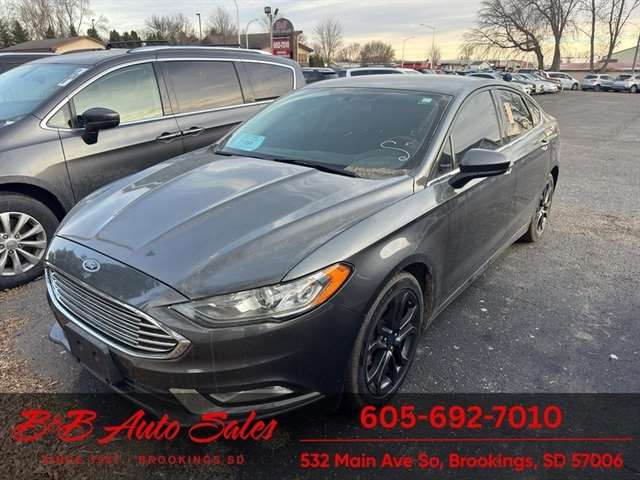 2018 Ford Fusion SE — Reliable, Efficient, and Priced to Sell in Brookings, SD This 2018 Ford Fusion SE pairs a smooth 4-cylinder 2.5L gasoline engine with responsive front-wheel drive and an automatic transmission, delivering a comfortable, fuel-efficient ride for daily commuting or weekend trips. Thoughtfully equipped for modern driving, this Ford Fusion includes Automatic Climate Control to keep the cabin comfortable in any season, Hands-Free Bluetooth for safe, convenient calling and audio streaming, and XM Radio for expanded entertainment options on the road. Safety and convenience features include a Back-Up Camera for easier parking and maneuvering, plus a CARFAX Clean Report providing peace of mind about the vehicle`s history. The interior offers a well-appointed layout with supportive seating and intuitive controls, while the Ford Fusion`s balanced handling and composed ride make it a practical choice for families and professionals alike. Located in Brookings, SD, this Ford Fusion SE is competitively priced and advertised as the best price available — an outstanding value for buyers seeking quality and affordability. Whether you`re upgrading from a compact car or seeking a reliable second vehicle, this Ford Fusion blends efficiency, comfort, and desirable features in one attractive package. Contact us to schedule a test drive and see why this 2018 Ford Fusion SE is the smart choice in Brookings.