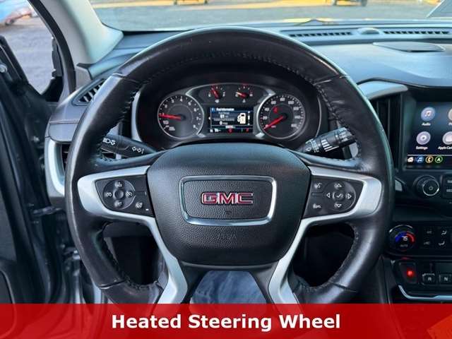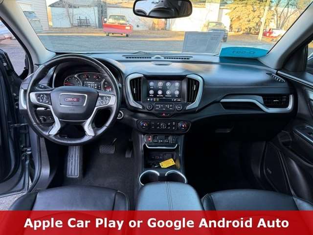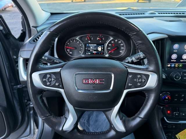 Bluetooth technology is built into this model, keeping your hands on the steering wheel and your focus on the road. This mid-size suv offers Automatic Climate Control for personalized comfort. This 2018 GMC Terrain features a high end BOSE stereo system. The rear parking assist technology on the GMC Terrain will put you at ease when reversing. The system alerts you as you get closer to an obstruction. Protect this model from unwanted accidents with a cutting edge backup camera system. The GMC Terrain offers Apple CarPlay for seamless connectivity. The GMC Terrain has a clean CARFAX vehicle history report. This vehicle is a certified CARFAX 1-owner. The leather seats in the vehicle are a must for buyers looking for comfort, durability, and style. Keep your hands warm all winter with a heated steering wheel in this model . The GMC Terrain comes equipped with Android Auto for seamless smartphone integration on the road.