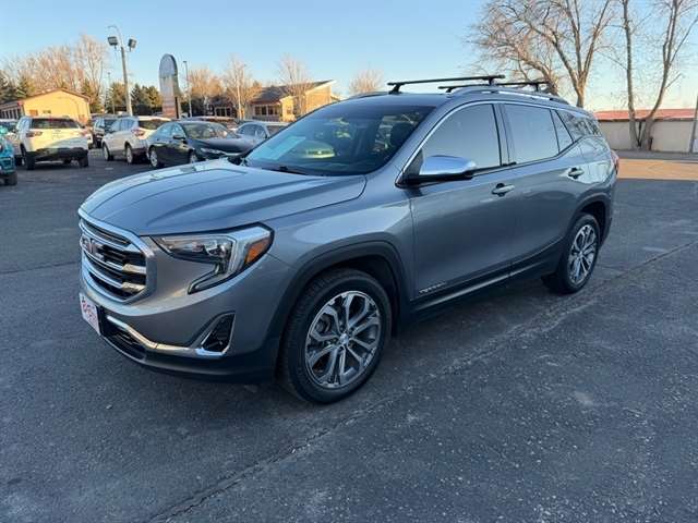 2018 GMC Terrain SLT AWD — top value in Brookings, SD! This spacious, efficient GMC Terrain pairs a responsive 2.0L 4-cylinder gasoline engine with intelligent all-wheel drive for confident handling in every season. If you`re searching for premium features at the best price in the area, this GMC Terrain checks every box. Step inside to enjoy a comfortable, upscale cabin with leather-appointed seating and a premium BOSE stereo that turns every drive into an audio experience. The factory navigation system helps you find the fastest routes, while Android Auto integration keeps your favorite apps, messages, and music seamlessly connected and hands-free. Cold mornings are no problem — remote start gets the climate right before you step outside. Safety and convenience come standard: the back-up camera provides clear rear visibility for parking and hitching, and the GMC Terrain`s suite of driver-assist features adds peace of mind for daily commutes and long trips alike. Cargo space is generous, with versatile rear seats that fold to accommodate gear for weekend getaways. Located in Brookings, SD, this 2018 GMC Terrain SLT AWD represents the best price on a well-equipped, reliable crossover with premium amenities. Act now — inventory moves quickly. Contact us to schedule a test drive and lock in this exceptional value before it`s gone.