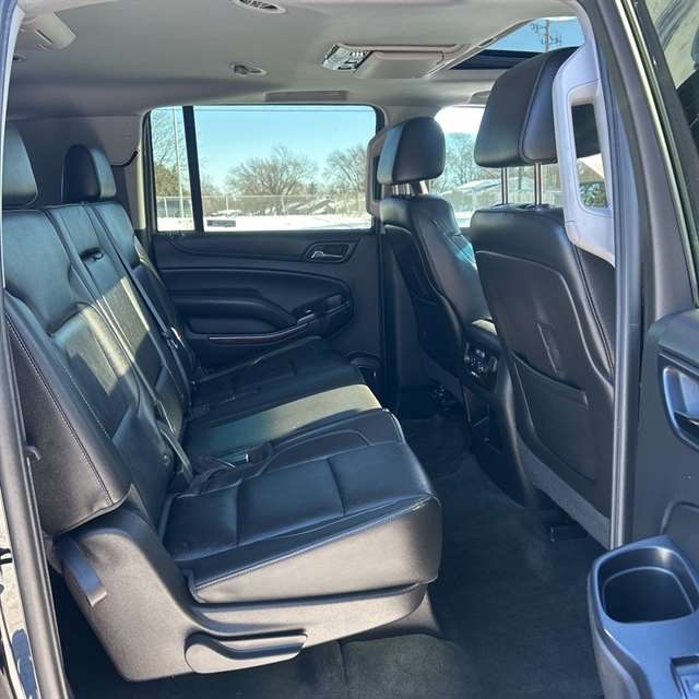 Fully Inspected and Serviced, Leather Seats, Sunroof, Navigation, Heated Seats, Power Seats, Blind Spot Warning, Third Row Seating, Remote Start, Alloy Wheels, Cooled Seats, Backup Camera, 3.42 Rear Axle Ratio, 3rd Row DVD Screen, 3rd row seats: split-bench, 5 Auxiliary 12-volt Power Outlets, ABS brakes, Adaptive Cruise Control w/Front Automatic Braking, Alloy wheels, Automatic temperature control, Black Assist Steps w/Chrome Strip, CD player, Color-Keyed Heated Leather-Wrapped Steering Wheel, Driver Alert Package, Electronic Stability Control, Enhanced Safety Package, Exterior Parking Camera Rear, Front Bucket Seats, Fully automatic headlights, HD Trailering Package, Heated rear seats, Inside Rear-View Auto-Dimming Mirror, Integrated Trailer Brake Controller, Interior Movement Sensor, Memory Package, OnStar Basic Plan For 5 Years, OnStar w/4G LTE, Open Road Package, Passive Entry System, Power 2nd Row 60/40 Split-Folding Bench Seat, Power Rear Liftgate, Power Tilt & Telescopic Steering Column, Power Tilt-Sliding Sunroof w/Express-Open/Close, Power-Adjustable Pedals For Accelerator & Brake, Preferred Equipment Group 4SA, Premium audio system: IntelliLink, Premium Smooth Ride Suspension Package, Push Button Keyless Start, Radio: AM/FM/SiriusXM/HD w/Navigation, Rear air conditioning, Rear Cross-Traffic Alert, Rear Seat Blu-Ray/DVD Entertainment System, Remote Keyless Entry, Safety Alert Seat, Self-Powered Horn, Side Blind Zone Alert w/Lane Change Alert, Speed control, Standard Suspension Package, Steering wheel mounted audio controls, Traction control, Universal Home Remote, VAC Power Disc Brakes w/ESS, Vehicle Inclination Sensor, Ventilated front seats, Wheels: 22`` 6-Spoke Black (LPO), Wireless Charging.