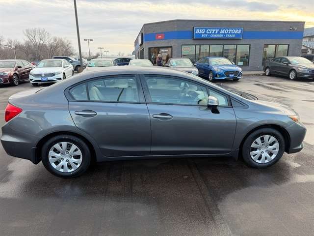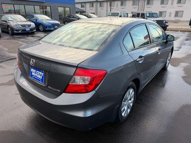 Cruise around town in style with this sophisticated 2012 Honda Civic Sdn in a sleek brown color. Powered by a 1.8L SOHC MPFI 16-valve i-VTEC I4 engine, this car is as efficient as it is reliable. With a 5-speed manual transmission and front-wheel drive, you`ll enjoy a smooth and responsive driving experience. The Eco Assist system helps you save on fuel while the Motion-adaptive electric pwr rack & pinion steering ensures precise handling.Inside, you`ll find comfortable cloth reclining front bucket seats and a variety of convenient features such as a tilt/telescoping steering column, air conditioning, and an Intelligent multi-information display (i-MID) to keep you informed on the go. Safety is paramount with features like the ACE body structure, Vehicle Stability Assist (VSA) with traction control, and a tire pressure monitoring system.Not to mention, this car comes with a Carfax report, so you can purchase with confidence. Whether you`re commuting to work or exploring new places, this Honda Civic is ready to accompany you on all your adventures! Visit Big City Motors to shop our great deals. You can call 605-338-8001 to schedule your test drive today.