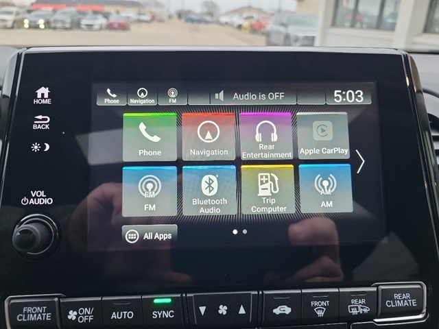 - Radio: 160-Watt AM/FM/HD/SiriusXM Audio System -inc: 6 speakers, subwoofer, Bluetooth HandsFreeLink, Bluetooth streaming audio, MP3/auxiliary input jack, radio data system (RDS), SMS text message function, 2.5-amp USB smartphone/audio interface port in center console, 2 2.5-amp USB charging ports in second row, CabinControl remote compatibility, 8" display audio w/high-resolution (720P) electrostatic touch-screen and customizable feature settings, Apple CarPlay/Android Auto, illuminated steering wheel-mounted audio controls and black fin-type roof-mounted antenna